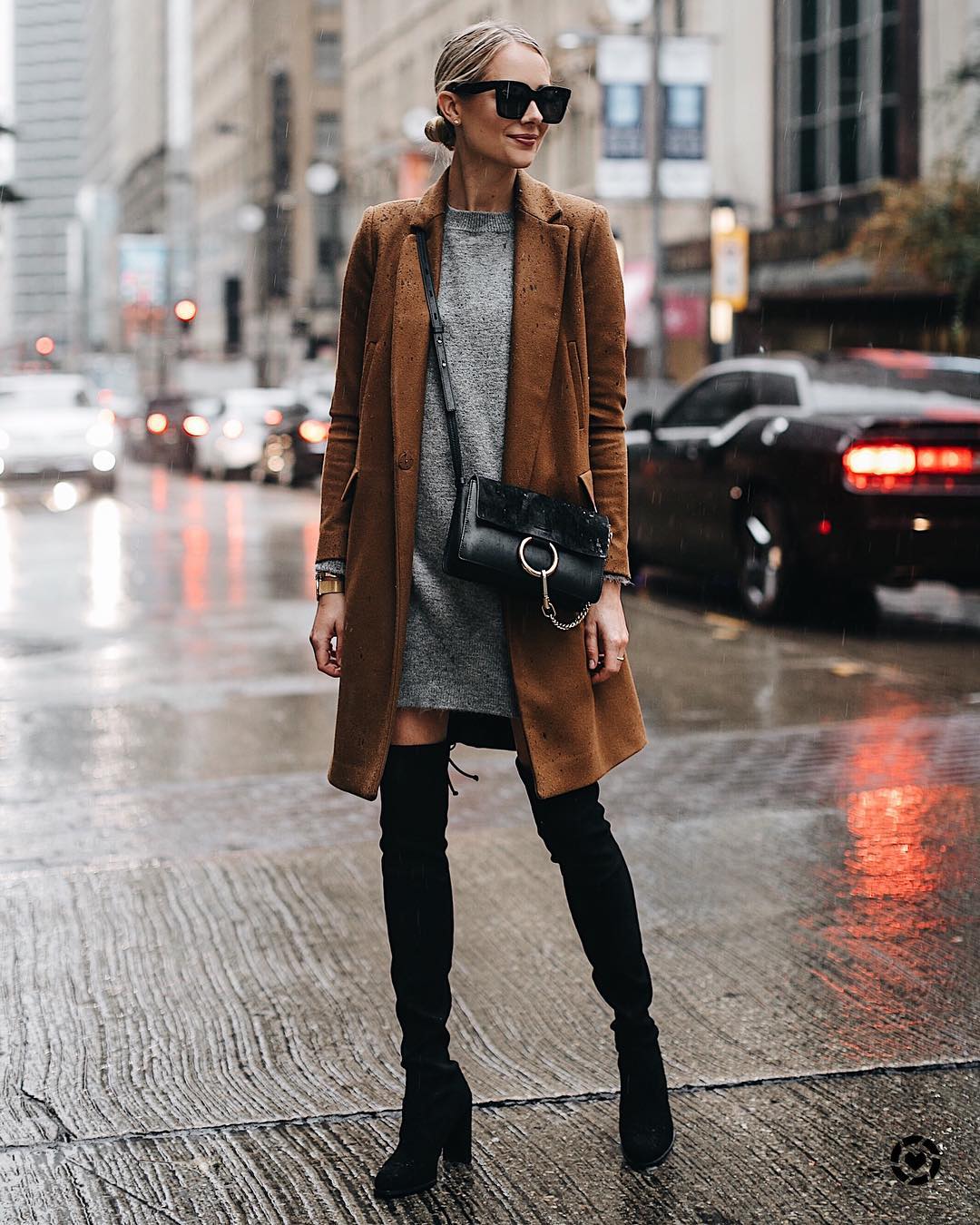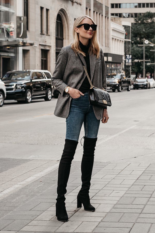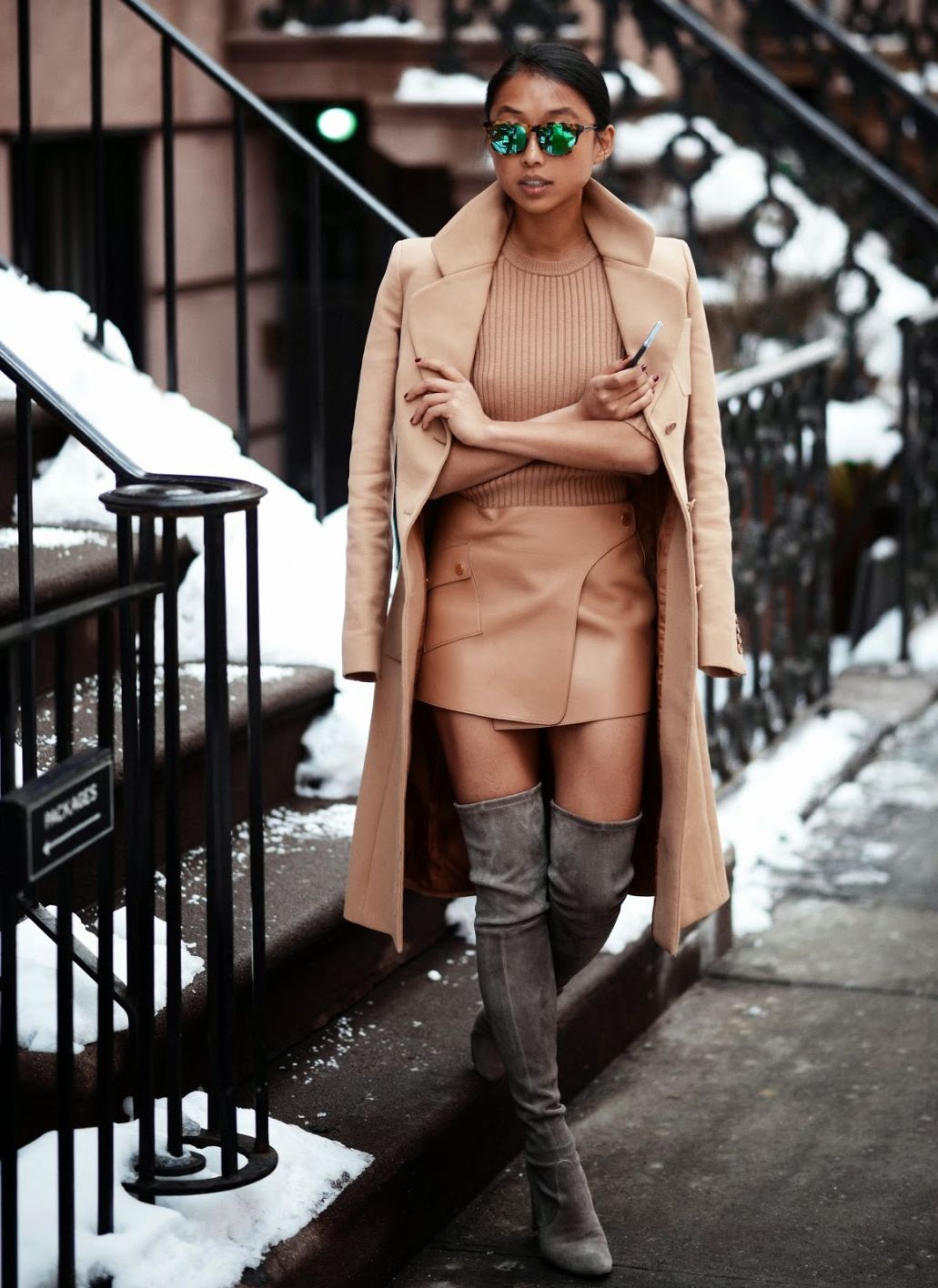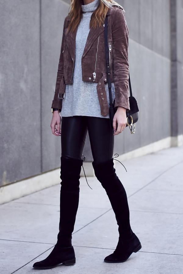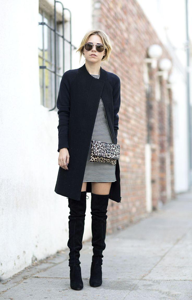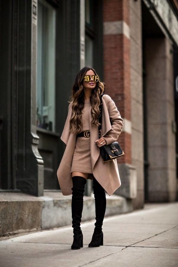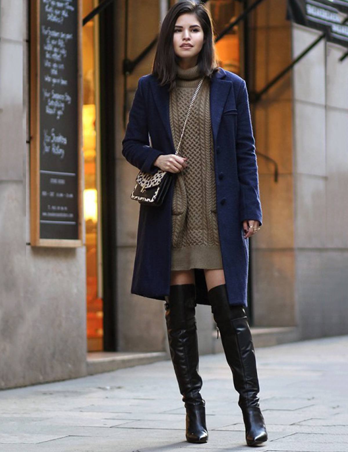 Vêtements d'extérieur et bottes au genou: des combinaisons élégantes