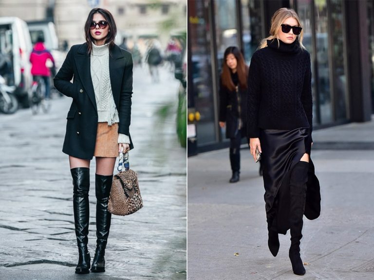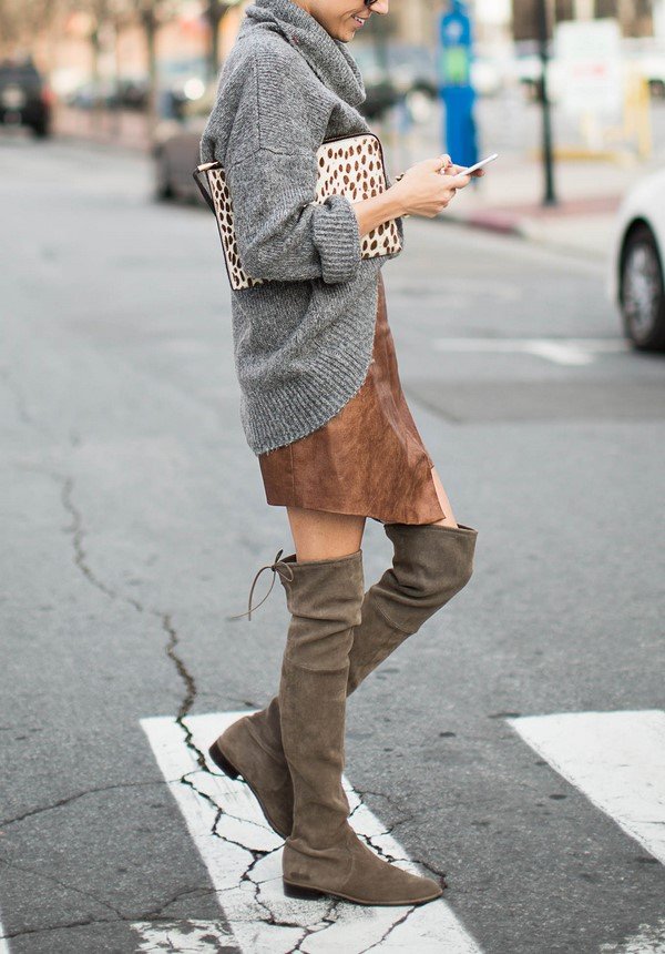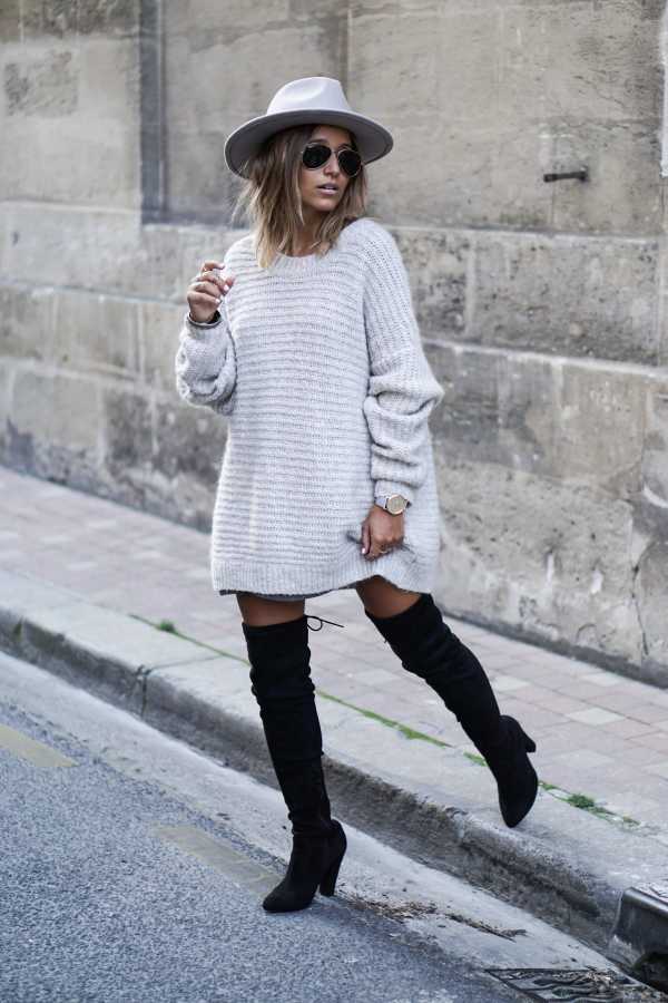 En choisissant des bottes au-dessus du genou comme chaussures d’hiver ou d’automne, chaque fille réfléchit au type de vêtement de dessus avec lequel combiner ce type de chaussures. Vous pouvez combiner des bottes élégantes au-dessus du genou avec n’importe quel vêtement de dessus. Un pull chaud est considéré comme la base d'une garde-robe d'automne-hiver pour femmes en raison de sa praticité. Sous les chandails tricotés, vous devez choisir des bottes qui ne sont pas très hautes.
