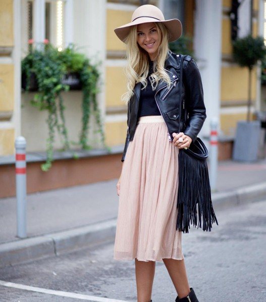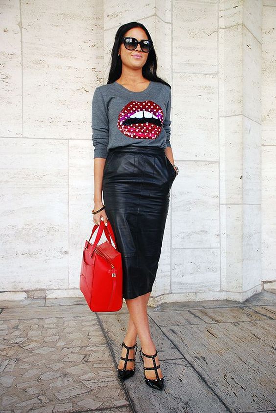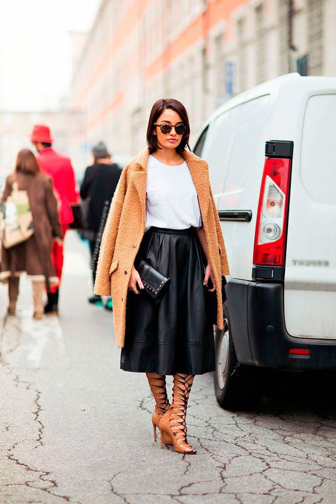 Que porter avec une jupe midi en cuir?