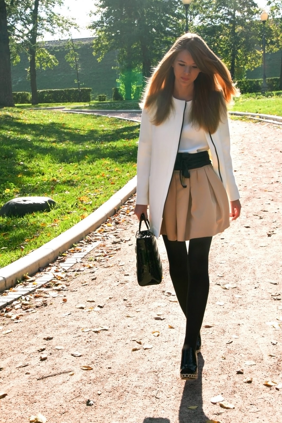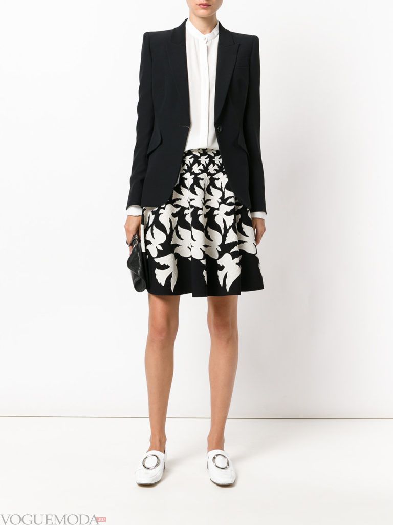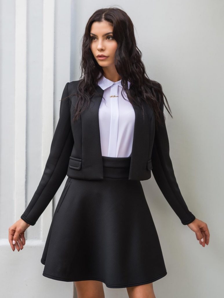 La veste populaire aujourd'hui sera idéale avec une jupe. Elle complète avec succès le set avec une chemise, un pull ou un haut. Cette image est parfaite pour la période automne-printemps.