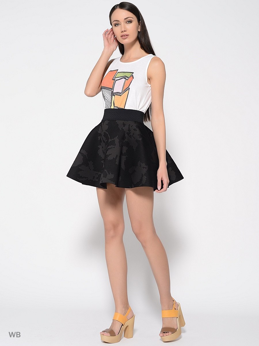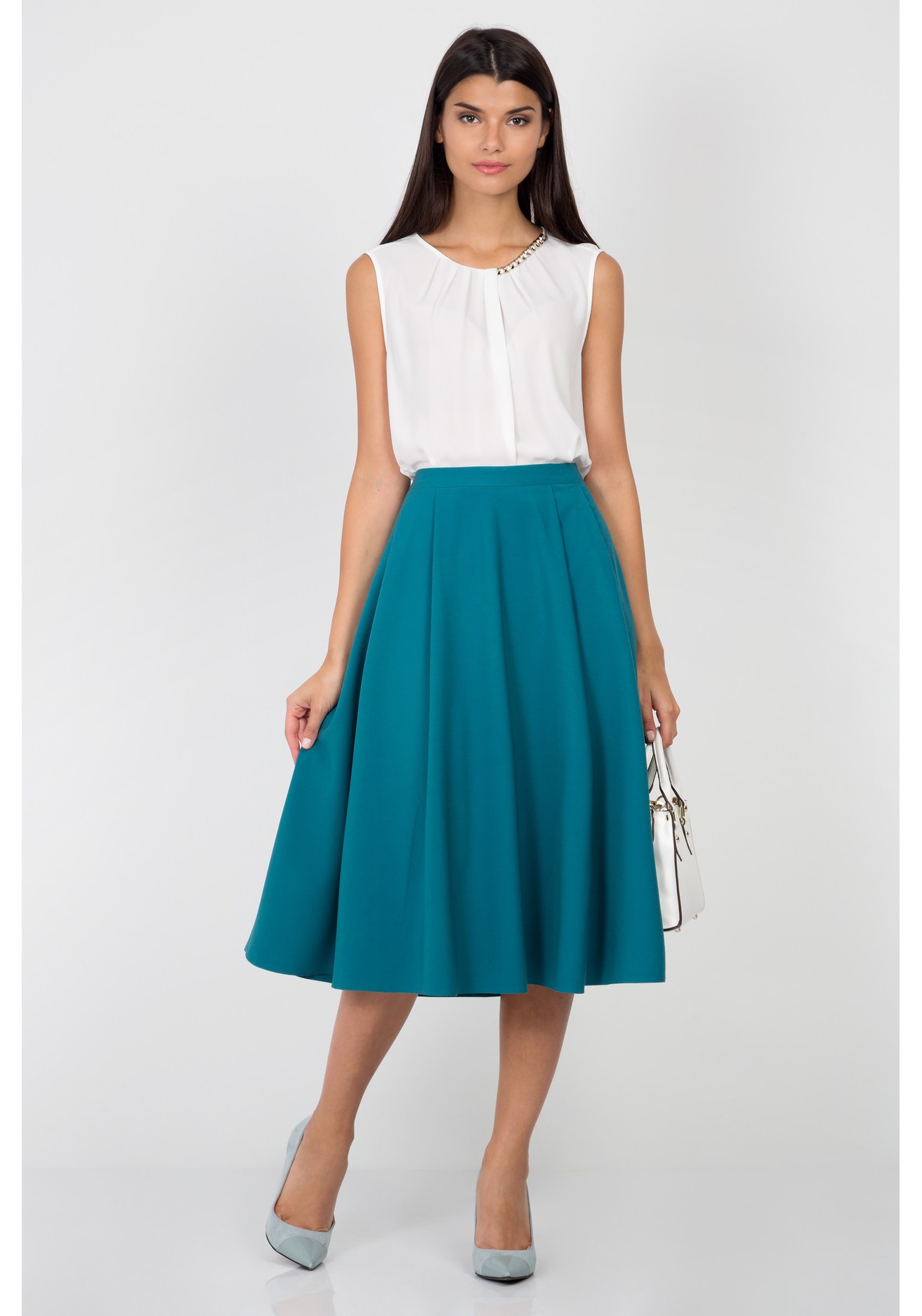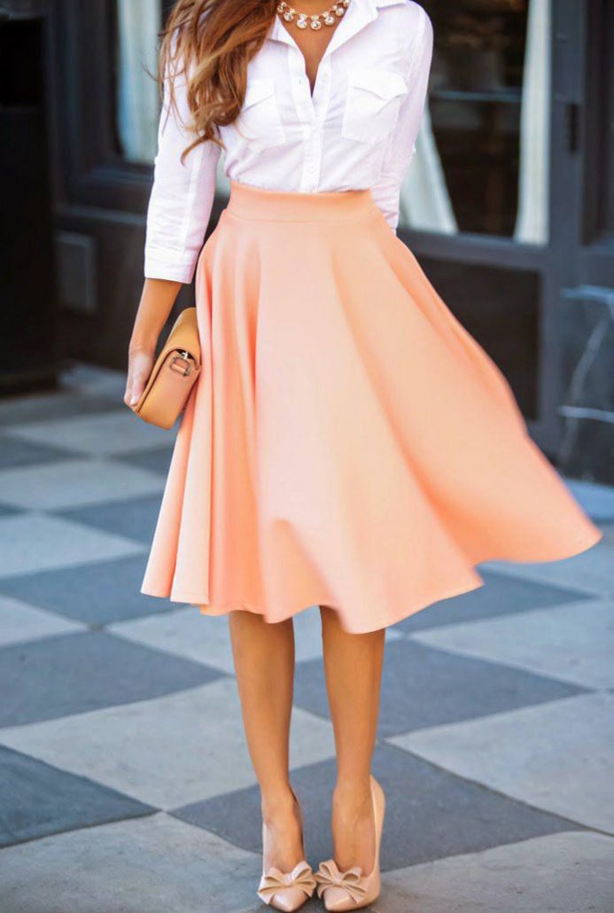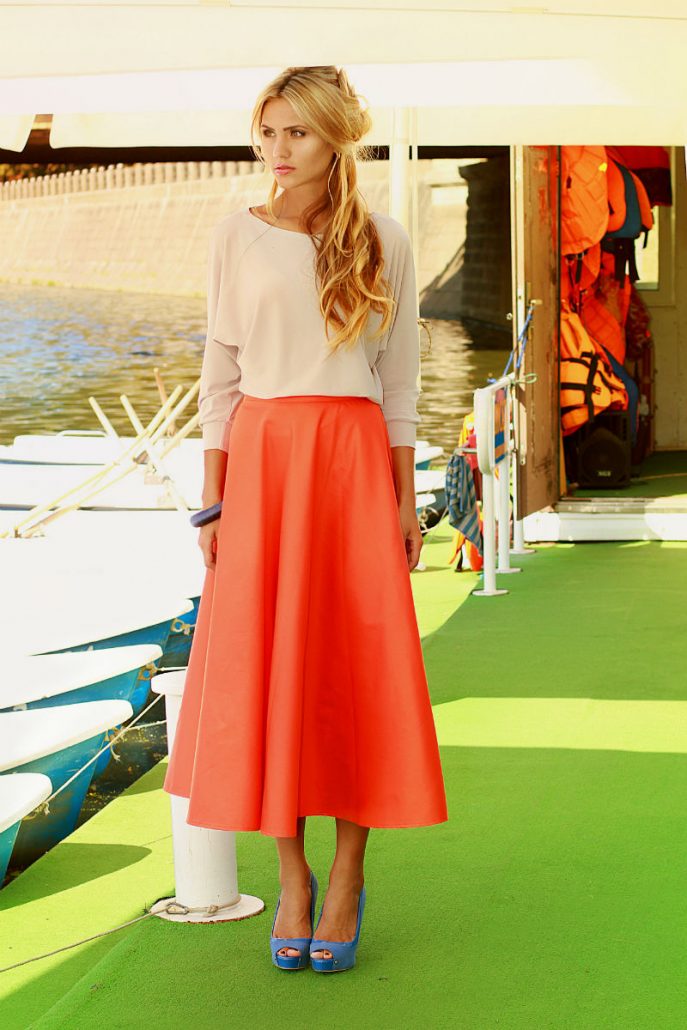 En été, le chemisier, le haut ou le cardigan à manches courtes, dans lequel les épaules restent ouvertes, complètera parfaitement la jupe. Complétez l'image de sandales, ballerines ou sandales.