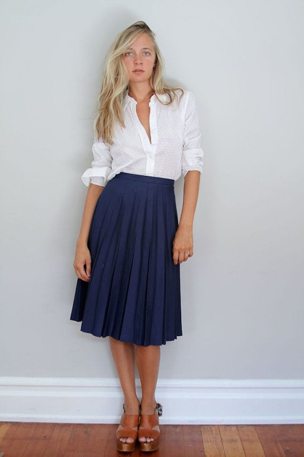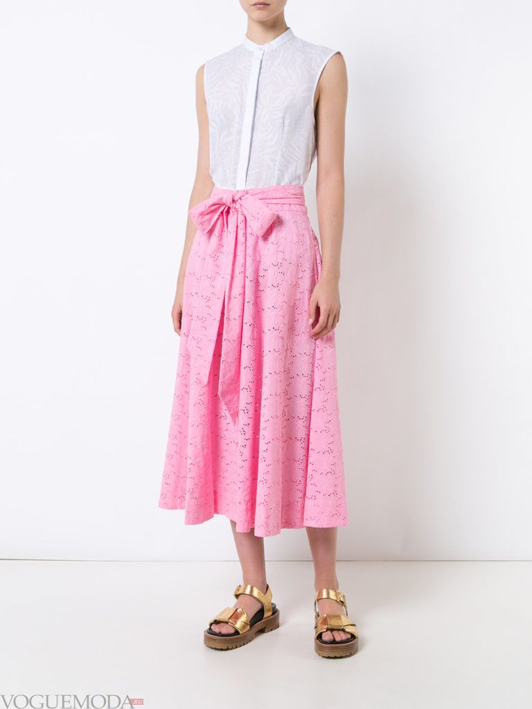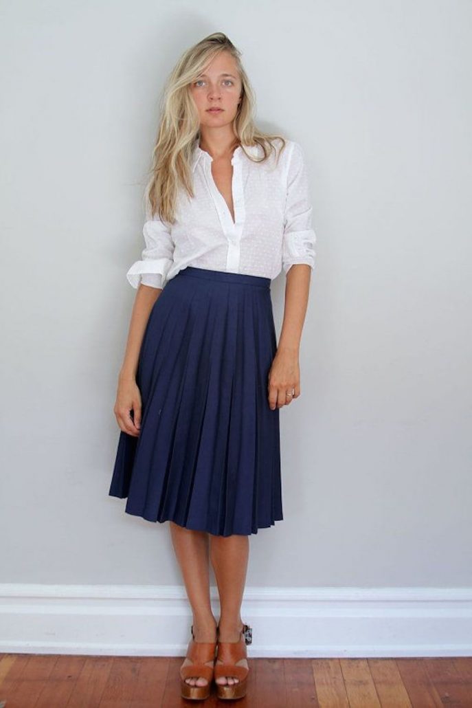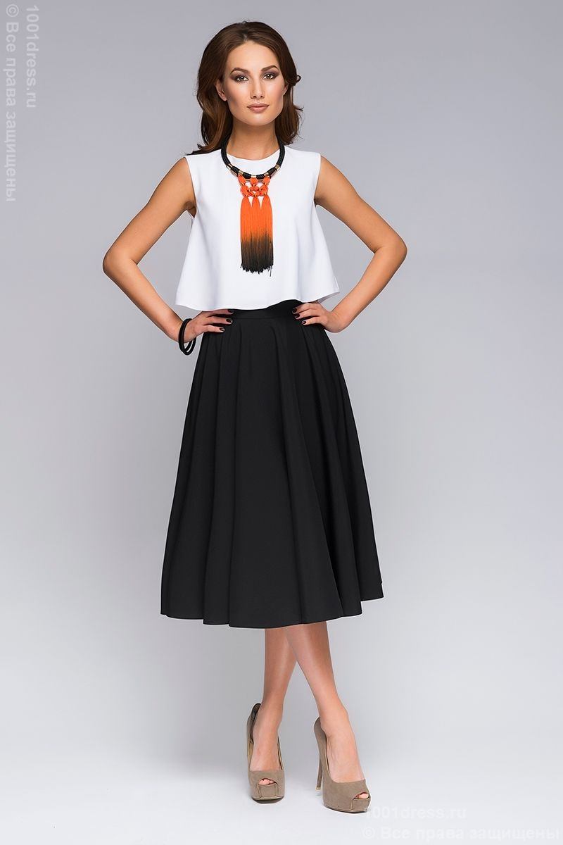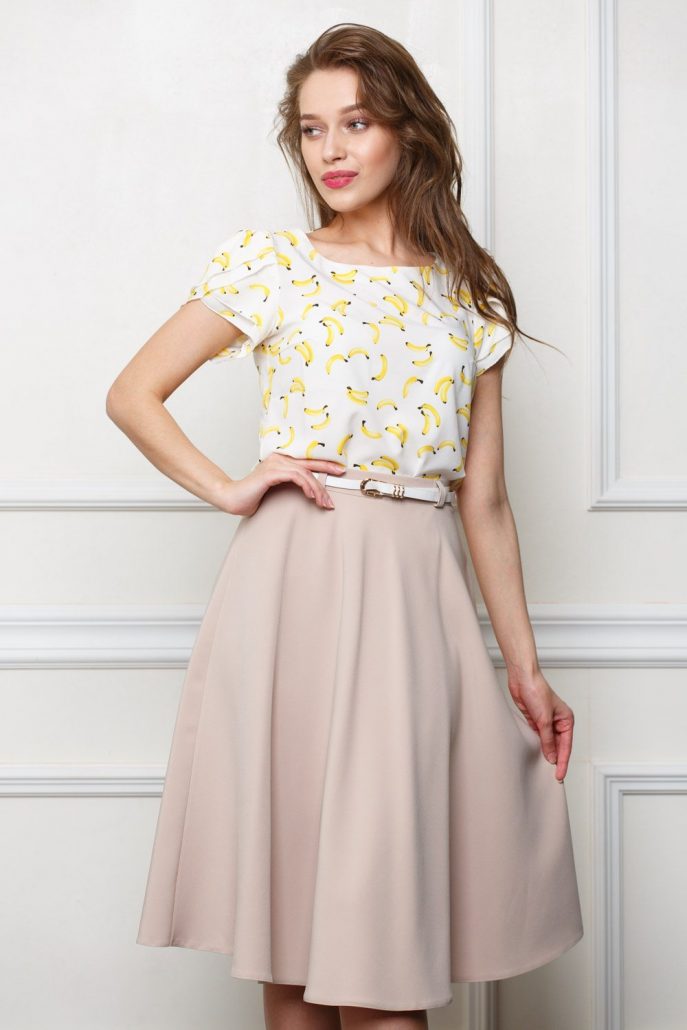 Pour se concentrer sur la jupe, le haut doit être sélectionné discret. Un chemisier de légères nuances de tissu léger sera un ajout classique. En été, une blouse peut être sans manches.