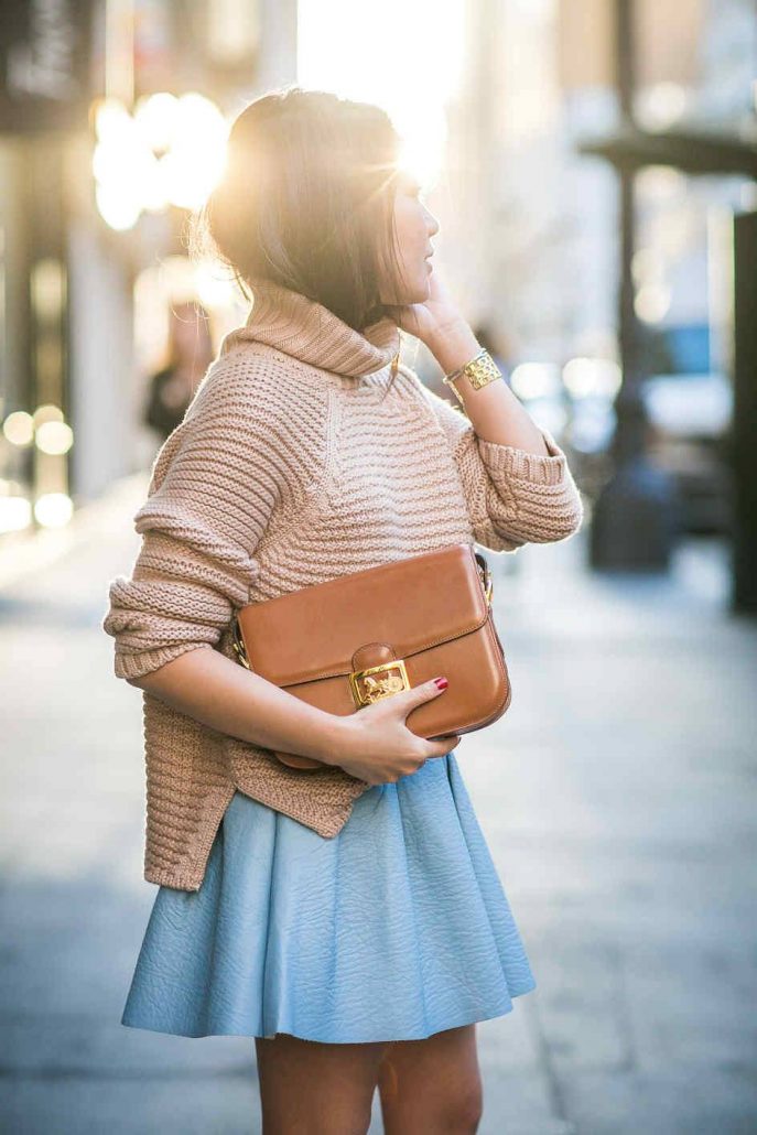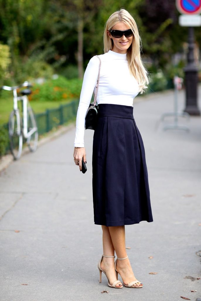 Les jupes courtes et longues peuvent être portées avec un col roulé. Une jupe lumineuse avec un col roulé noir sera particulièrement impressionnante.