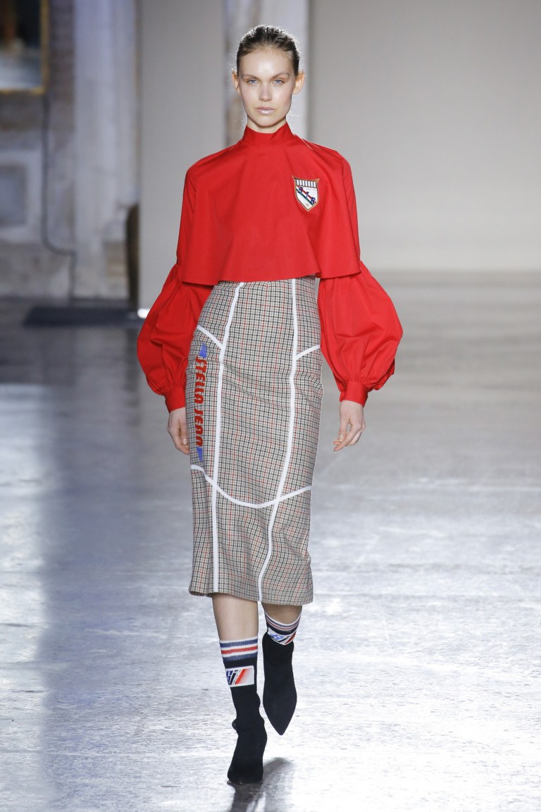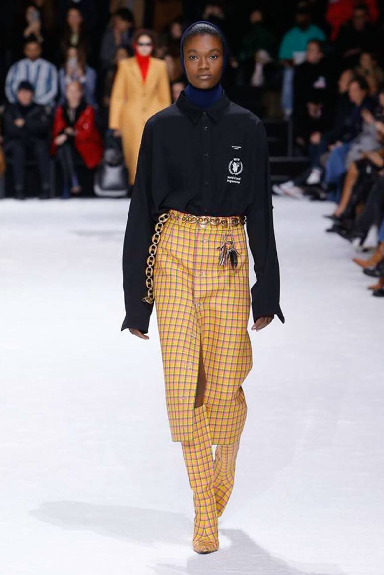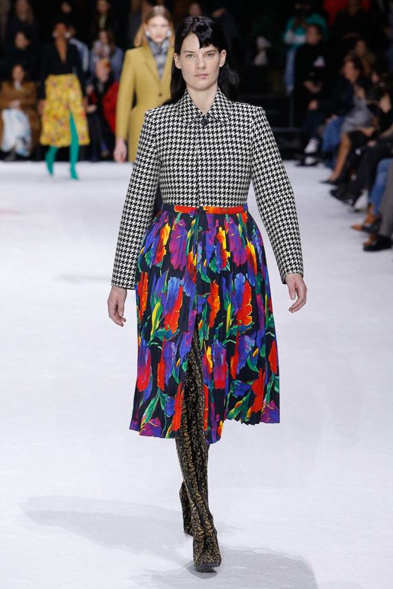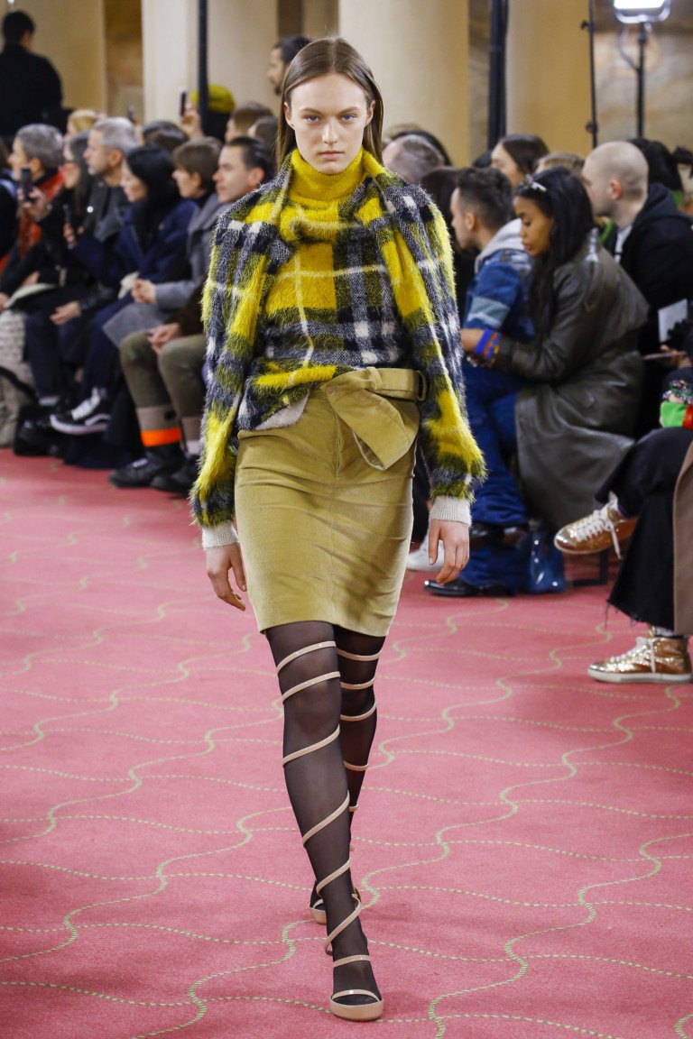 La cellule fonctionne très efficacement sur les femmes aux hanches minces. Les jolies femmes élancées ne craignent pas du tout de mettre une jupe à carreaux pour le travail, même dans des cellules aux couleurs vives et très dangereuses pour l'image d'une entreprise. Des intersections de rayures épaisses sur une jupe se trouvent très souvent aux endroits les plus spécifiques, au milieu d'une figure féminine. Cela élargit visuellement les lignes les plus larges du corps. La cellule est très attrayante pour les femmes habillées dans un style jeune et preppy. Si vous n’avez pas peur d’agrandir visuellement la partie inférieure de la silhouette, choisissez facilement une jupe en tissu de la largeur, de la hauteur et de la couleur de la cage. Il est préférable de porter une jupe cage à sommet monophonique. Toutefois, sur les passerelles 201, les concepteurs suggèrent d’utiliser ces jupes dans des images multicouches et dans un style oversize.