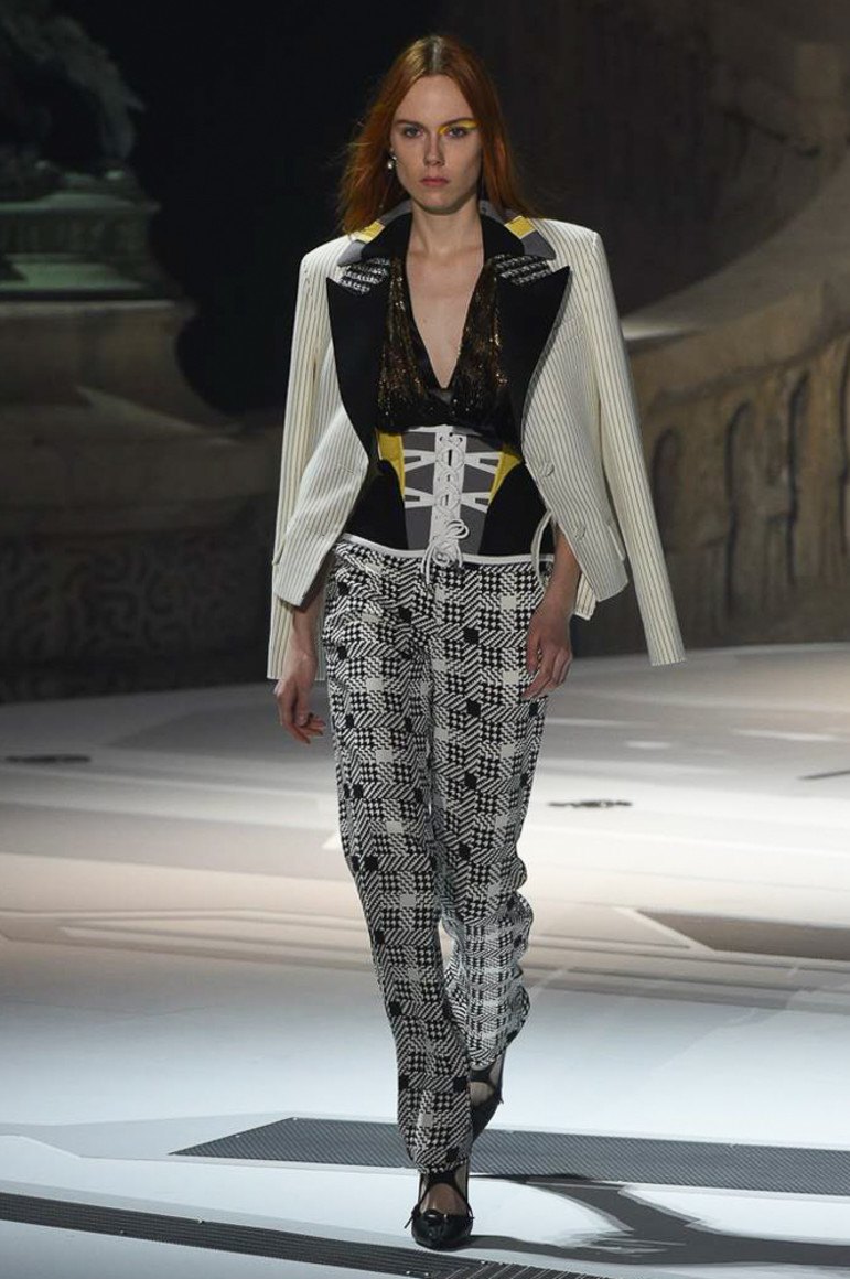 Si la cage est très active et que vous êtes une femme de grande taille, les stylistes ne recommandent pas les ensembles à damiers complets, mais suggèrent de passer un costume à la vapeur et de porter le bas et le haut séparément, en complétant les vêtements avec des vêtements ordinaires. S'il vous plaît noter que ce genre de chose était populaire au milieu des années 90 et aujourd'hui, ils règnent à nouveau. La combinaison de couleurs vives d'une veste à carreaux avec l'intérieur d'un ensemble monophonique est terriblement populaire. Les femmes de grande taille ont leur place dans une cage à dominante blanche. De tels modèles étendent la figure verticalement. Une veste à carreaux se marie à la perfection avec un pantalon et une jupe tendance. Les femmes plus âgées la meilleure option - le choix dans le sens du pantalon sous une veste à carreaux.