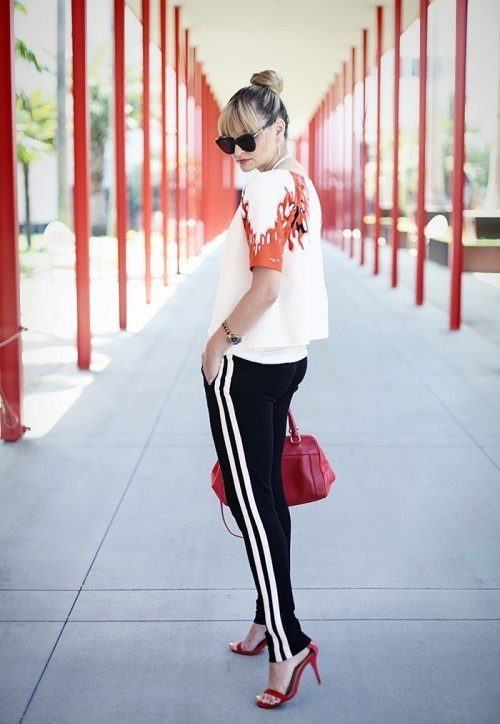 Le pantalon de jogging raccourci à rayures s'assortit parfaitement aux sweatshirts et aux chaussures ton sur ton avec le pantalon féminin tendance. Une veste surdimensionnée et des talons aiguilles sont également en parfaite harmonie avec les rayures. Un t-shirt stylé avec une encolure en forme de lettre V avec la veste ou le blazer le plus simple vous permet également de créer de superbes images dans lesquelles l'accent est mis sur les pantalons courts à rayures. Un certain type de femmes peut même se permettre de mettre une chemise pour homme assortie aux rayures elles-mêmes sous un pantalon à rayures, ce qui est aussi spectaculaire.