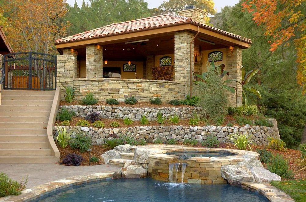 La pierre est un matériau coûteux et l'intervention de spécialistes est nécessaire pour l'exécution des travaux. Mais la vue unique sur la tonnelle, idéalement située sur le site, vaut bien l’argent et les efforts investis.