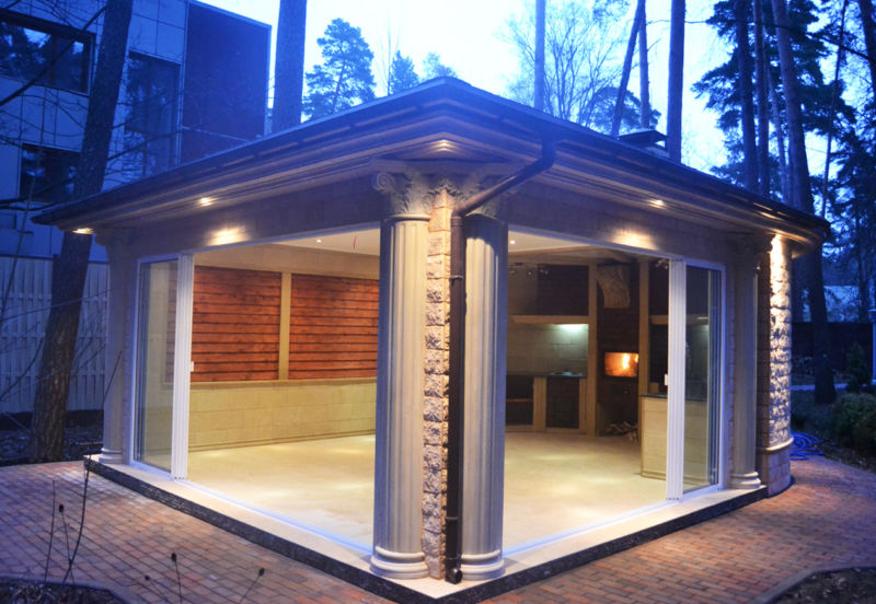 Cette option est la plus courante et la plus appréciée des concepteurs: d’un kiosque fermé à un simple auvent, du classique au minimalisme. Mais la description doit commencer par les spécifications techniques.