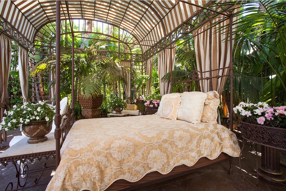 Toutes sortes de fleurs tissées peuvent créer une atmosphère romantique. Les rideaux d'air vont transformer n'importe quelle tonnelle. Sans créer un espace confiné, ils s'abritent des regards indiscrets et du soleil.