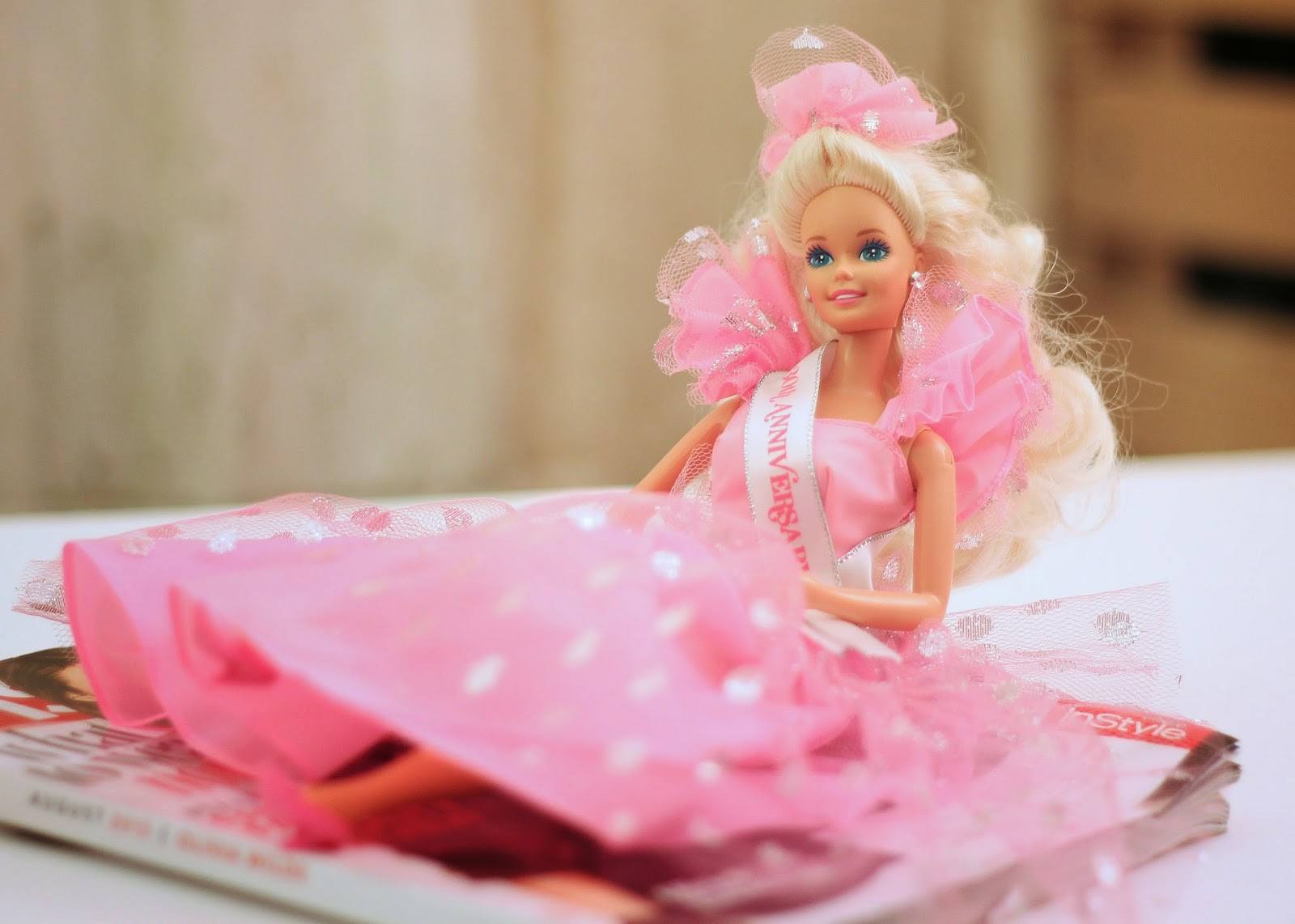 "Anniversaire Barbie" - une poupée créée en l'honneur du quarantième anniversaire des poupées Barbie. La maison de bijoux a créé une interprétation extraordinaire. La poupée était présentée sous la forme d'une brune, dans une tenue orientale, décorée d'or et de diamants. Il a fallu 160 diamants pour fabriquer la poupée. Son coût est de 85 000 dollars.