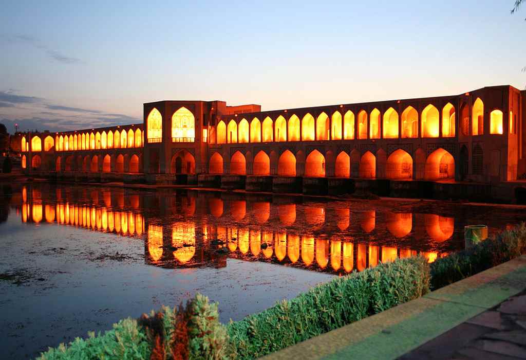Considérant les plus beaux ponts, vous ne pouvez pas aller en Iran dans la ville d’Ispahan et marcher le long du pont piétonnier Field Hajj. Pole Hajju - un pont de pierre sur la rivière. Construit sous la forme d'arches au Moyen Age. L'architecture du pont peut être attribuée en toute sécurité aux chefs-d'œuvre créés par l'homme. Vous pouvez décrire la beauté de ce bâtiment pendant très longtemps, mais nous vous conseillons de le regarder de vos propres yeux. Et nous vous conseillons particulièrement de regarder cette beauté la nuit, lorsque l'éclairage artificiel est activé. La vue est tout simplement magnifique, que vous pouvez regarder sans fin. La beauté captive et attire, provoquant les émotions les plus positives. Le pont est reconnu comme le plus beau pont du monde.