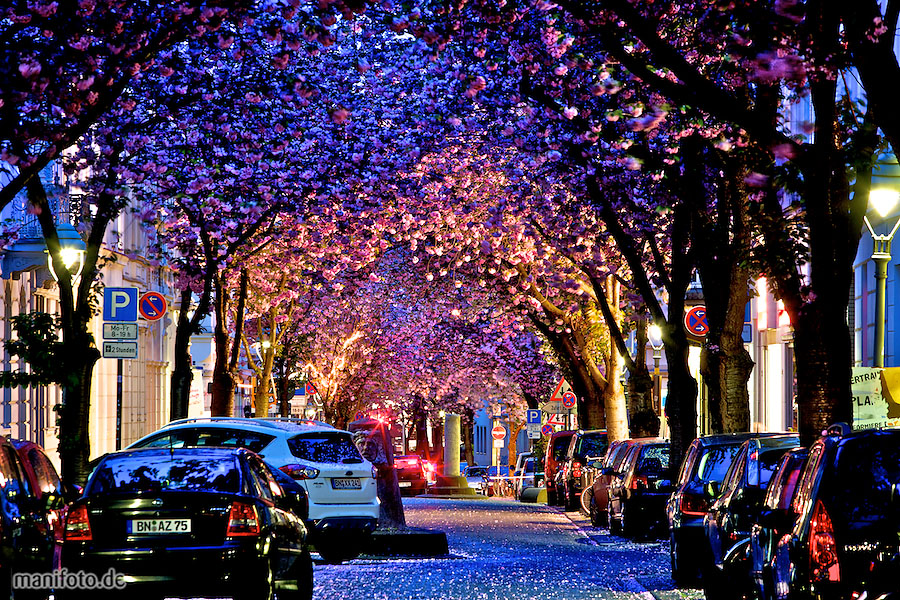 Allemagne, la ville de Bonn. La rue Hershtrasse est un véritable tunnel de cerises. Une beauté extraordinaire règne dans la rue au début du printemps, lorsque les cerisiers en fleurs, plantés en forme de tunnel. Les arbres florissants et fructueux forment un dôme de couleur rose pâle et, la nuit, avec la lumière des lanternes, vous avez l’impression de vous retrouver dans un incroyable conte de fées. Le reste de l'année, la rue Hershtrasse n'est pas moins confortable et agréable à pied.