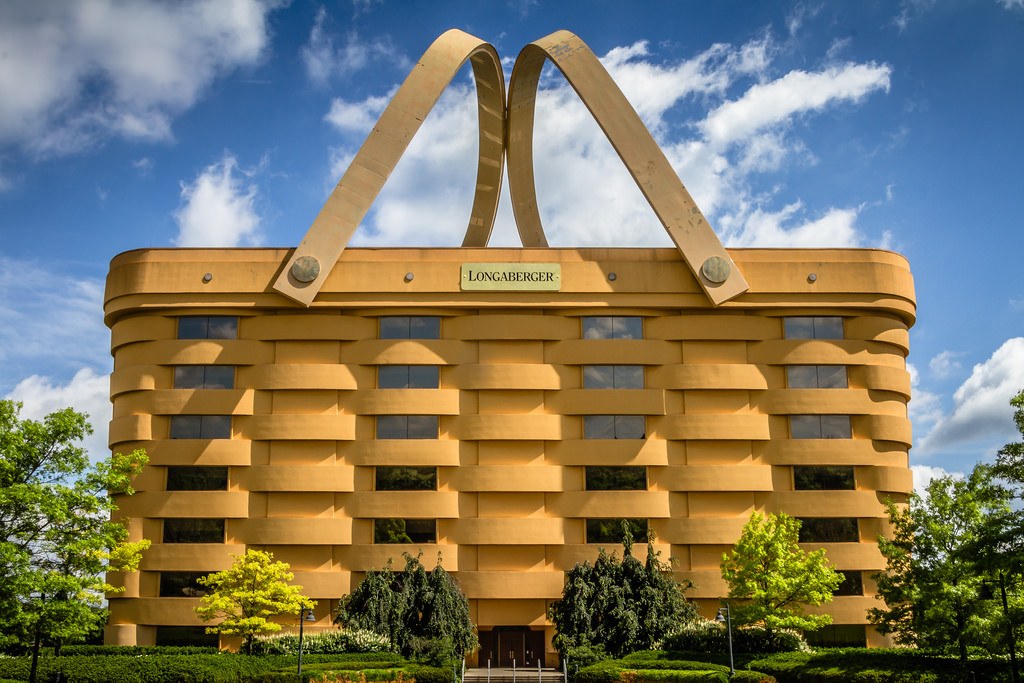 Une maison semblable à un panier située dans l'Ohio. La construction occupe environ 14 000 mètres carrés. Le bâtiment emploie plus de cinq cents travailleurs. La maison de paniers a quatre-vingt-quatre fenêtres. Le soir venu, un spectacle saisissant sur l'eau est à la portée de tous. La corbeille est éclairée de manière à donner l’impression d’un navire flottant. A l'intérieur, cette maison inhabituelle a l'air unique, ainsi qu'à l'extérieur.