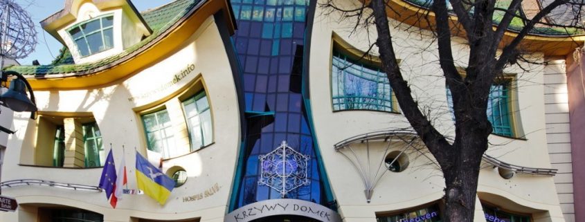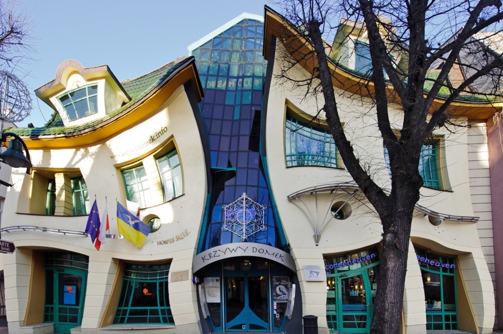 En 2004, la liste des maisons insolites s’est reconstituée avec une autre curiosité. Une maison amusante en Pologne a le nom d’une courbe. Il n'y a pas un seul niveau et angle. Cela est dû au fait que le bâtiment a des formes non conventionnelles. Les portes et les fenêtres sont construites de manière asymétrique, avec une courbure étrange. Il convient de noter le fait que cette maison inhabituelle n’est pas un musée. Il s’agit d’un bâtiment fonctionnel qui abrite des bureaux, des magasins, des salons et d’autres institutions publiques.