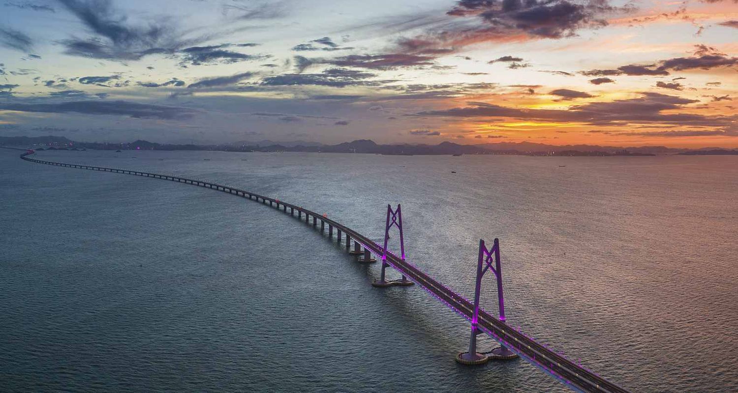 La construction de ce pont a pris beaucoup de temps, à savoir 8 ans (2009-2017). Seulement en 2026, un pont a été ouvert qui relie jusqu'à trois mégapoles - Hong Kong, Zhuhai et Macao. C'est lui qui est appelé à juste titre le plus long pont maritime. Après tout, sa longueur est de 55 km.