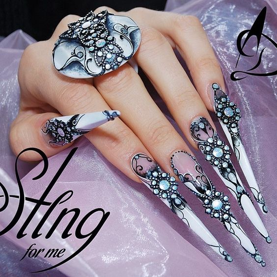 Les dessins sont l'une des méthodes les plus populaires de décoration de manucure. Le motif graphique est l’une des principales tendances hivernales de 2026. Le graphisme aura fière allure dans un dessin simple lorsque des motifs géométriques ordinaires sont utilisés, par exemple des zigzags, des rayures, des pois. Avec la bonne combinaison de motifs, vous pouvez créer une peinture abstraite. Les dessins avec des fleurs et des éléments enneigés doivent être distingués par la grâce et la finesse des lignes. Une plus grande attention devrait être accordée à la beauté et à l'élégance de l'image plutôt qu'à sa complexité. Les gravures avec des représentants du monde animal, qui donnent une image de la sexualité et de l'agression, continueront d'être demandées. Et il n’est pas nécessaire d’utiliser le thème du Nouvel An sur les ongles. il suffit de choisir des teintes froides de vernis.