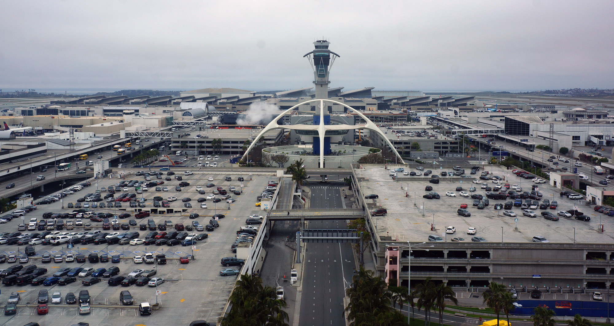 L'aéroport international de Los Angeles est le plus grand aéroport de la côte ouest. Son trafic passagers annuel est d’environ 60 millions de personnes. Il existe neuf terminaux en forme de fer à cheval. Des tunnels souterrains et des galeries reliant les secteurs du hub sont également fournis. Également sur le territoire de l'aéroport de Los Angeles, un terminal de fret d'une taille de 190 000 m2 et même une plateforme pour hélicoptères sont équipés.