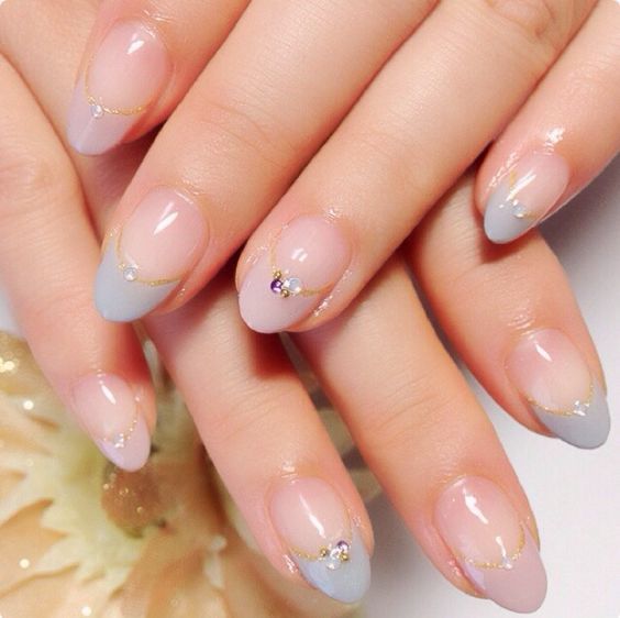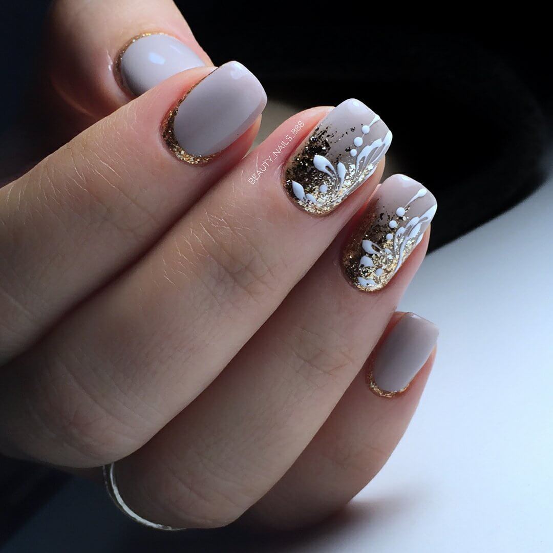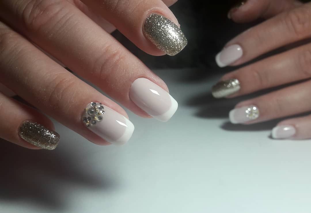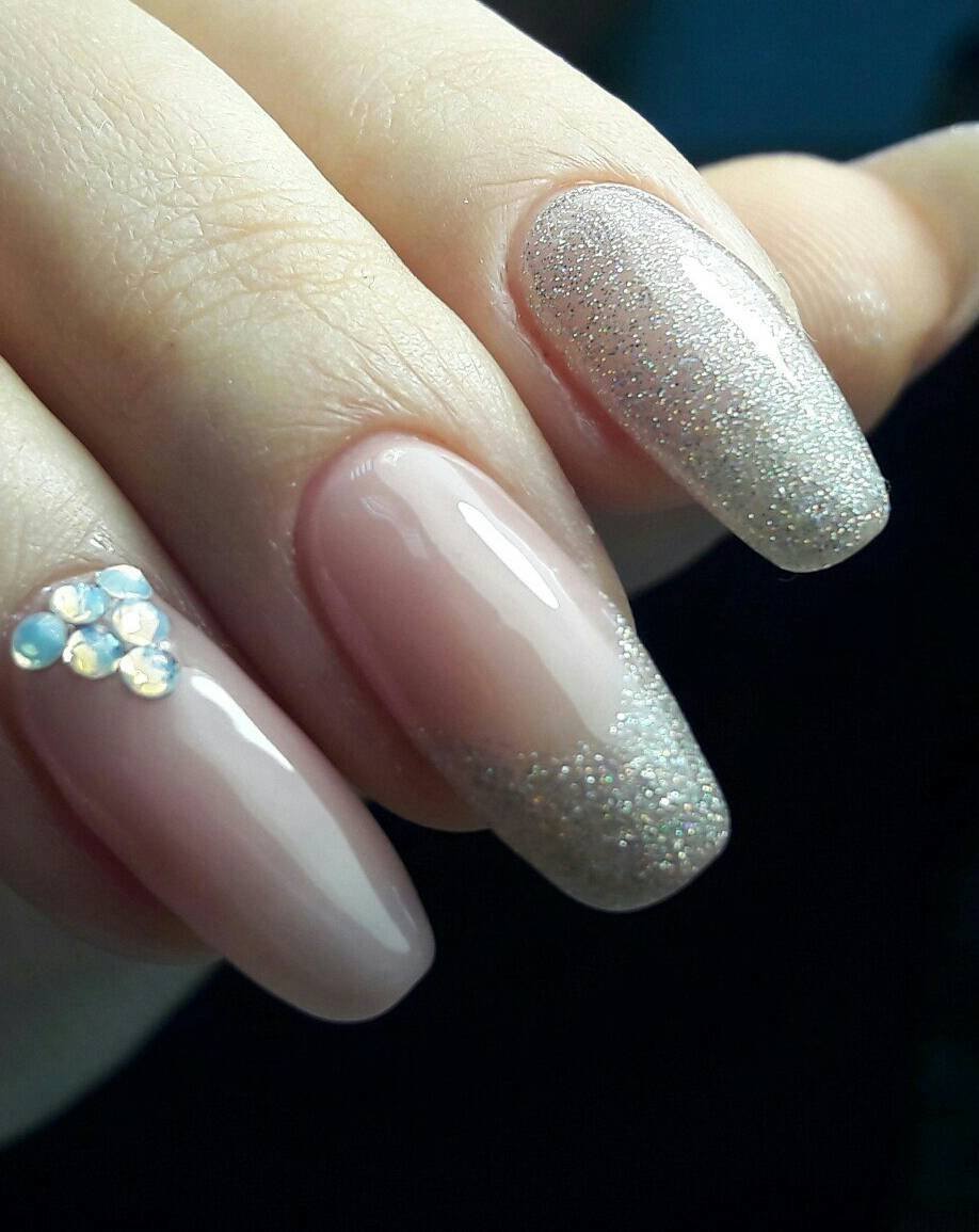 Tout le monde le sait depuis longtemps: pour donner à la manucure un aspect riche et incroyablement chic, vous pouvez utiliser des strass sur tout. Après tout, avec l'aide de pierres brillantes, les ongles féminins deviennent simplement expressifs et capables d'attirer l'attention des autres. Les strass peuvent être utilisés pour décorer la ligne du sourire, ainsi que des éléments supplémentaires pour créer l'ornement principal. Par exemple, si le souci sans nom aura un motif en forme de fleurs, les strass peuvent être utilisés comme décoration du cœur du bouton. Certains maîtres proposent de décorer la veste grise avec des strass, qui remplissent près de la moitié de la plaque à ongles. Cette option a un look très élégant et est en parfaite harmonie avec la robe de soirée.
