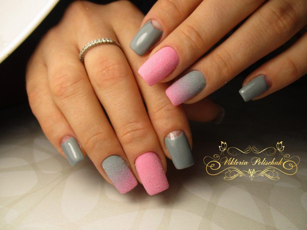 La palette de couleurs grise est considérée comme universelle, car elle peut être combinée à presque toutes les autres nuances. C’est la raison pour laquelle beaucoup de filles préfèrent jouer la veste en gris, qui peut être utilisée comme arrière-plan principal. Ombre a également l’air très intéressant et inhabituel, où la couleur grise se transforme doucement en une nuance de vernis turquoise ou menthe. Ce type de manucure occupe une place particulière parmi la jeune génération, qui aime les options incroyables et extraordinaires pour le nail art. La veste grise va bien avec le blanc, le rose, le noir et le bleu.