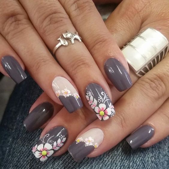 Le dessin décorant la manucure n’a jamais gâché un seul dessin d’ongle. L'essentiel est de choisir le bon ornement. Ainsi, une veste grise peut être combinée avec différents types de motifs. En tant qu'ornement, il vaut la peine d'utiliser à la fois des fleurs et des dessins sous la forme d'un véritable paysage. Tout dépend de l'imagination et des compétences du maître et, bien entendu, du désir du propriétaire d'une manucure. La veste grise est très jolie et une photo en forme de boutons de rose est appliquée. Les fleurs seront particulièrement originales en harmonie, surtout si elles sont saupoudrées d’acrylique. Cela donnera à l'ornement un renflement qui mettra en évidence toutes les idées incorporées dans l'image. Vous pouvez même utiliser la modélisation. Tout dépend des compétences du maître.