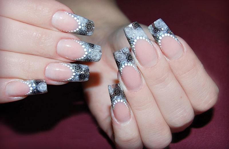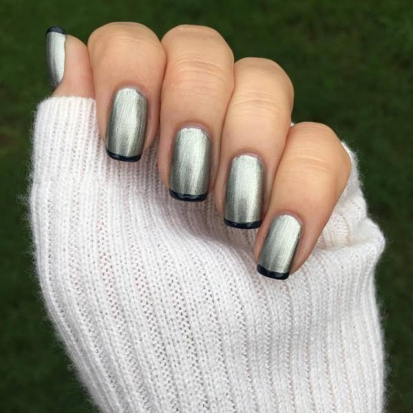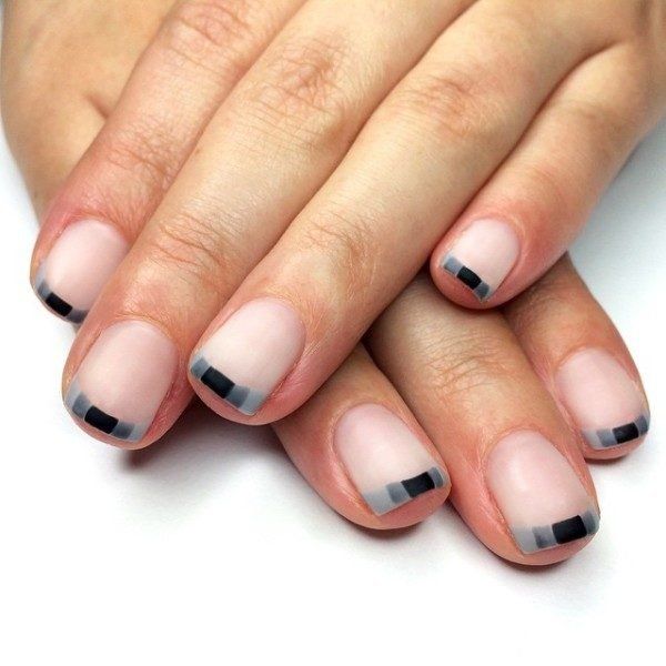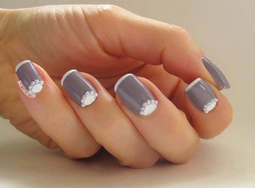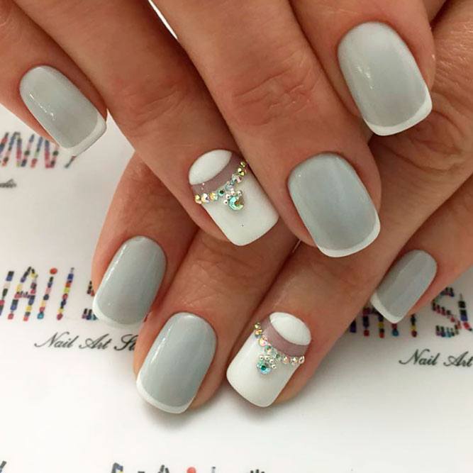 French dans une teinte grise est superbe, même sur des ongles courts. Il est capable de donner une certaine gentillesse aux mains féminines. De plus, cette option de conception est idéale pour toutes les occasions. Toujours sur le ton gris du revêtement de laque, non seulement les strass et les paillettes sont parfaitement combinés, mais également des peintures sous forme de fleurs et de monogrammes. Même les ongles courts peuvent être transformés avec le bon choix de couleur grise et son décor.
