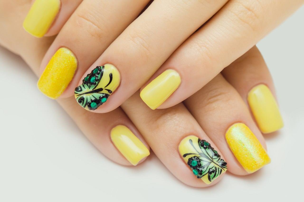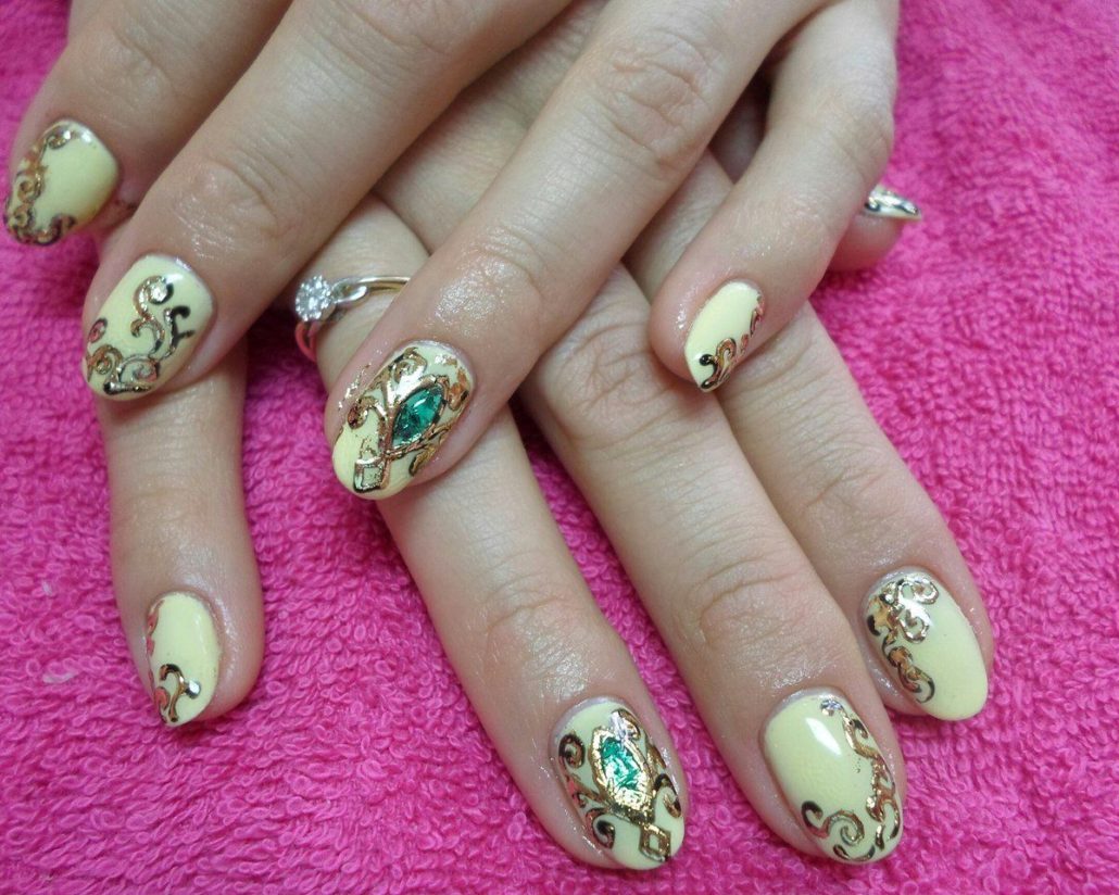 La manucure en gomme laque ne vous limite pas dans le choix d’un décor pour les ongles. Il peut s'agir de strass, de kamifubuki, de divers éléments volumétriques, etc. Et, du fait qu'un tel revêtement est durable, les éléments décoratifs seront également protégés de manière fiable.