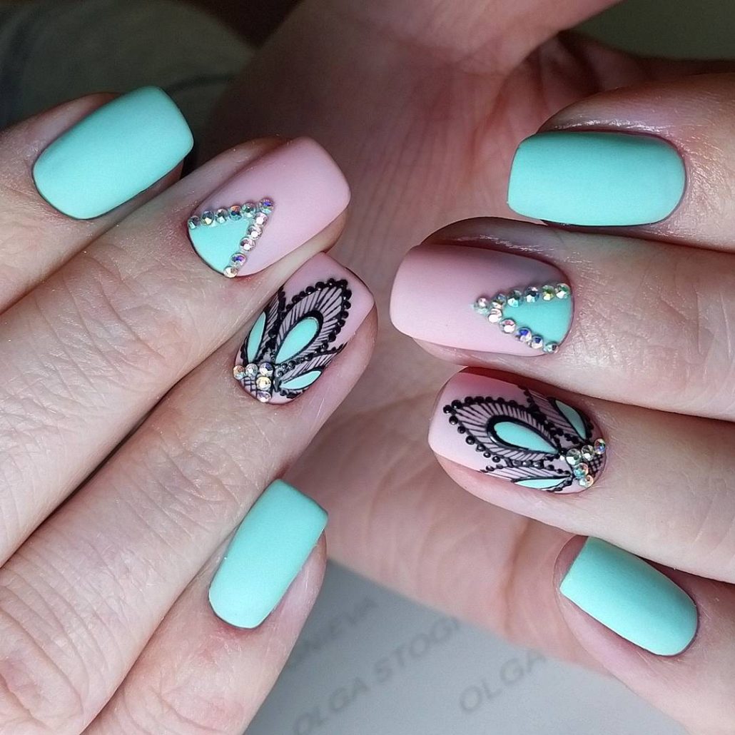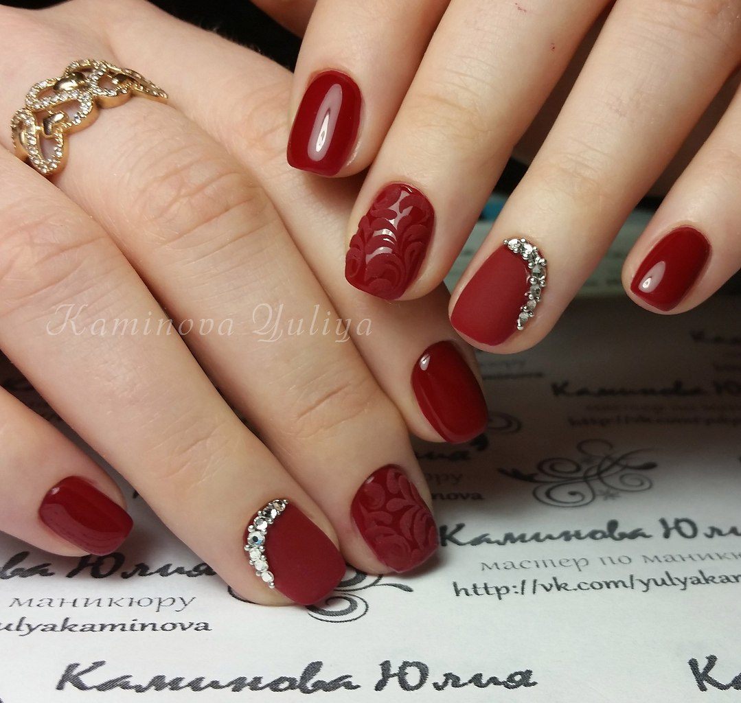 Ce nom a été attribué à la manucure, qui imite les pierres précieuses - saphir, rubis, etc. Ce motif peut être qualifié de luxueux et d’élégant. Pour la pierre de cadrage, la coulée est utilisée à l'aide d'une feuille de transfert.