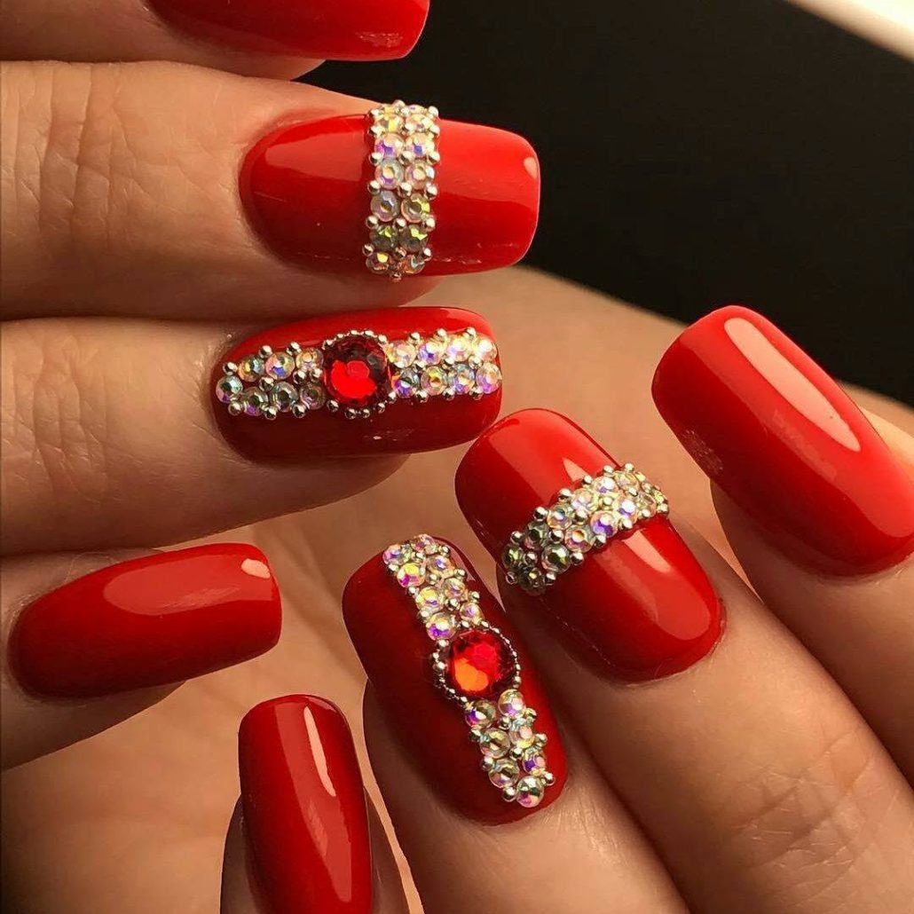 Décorer les ongles longs offrent des strass et des pierres. Il a l'air très brillant et impressionnant.