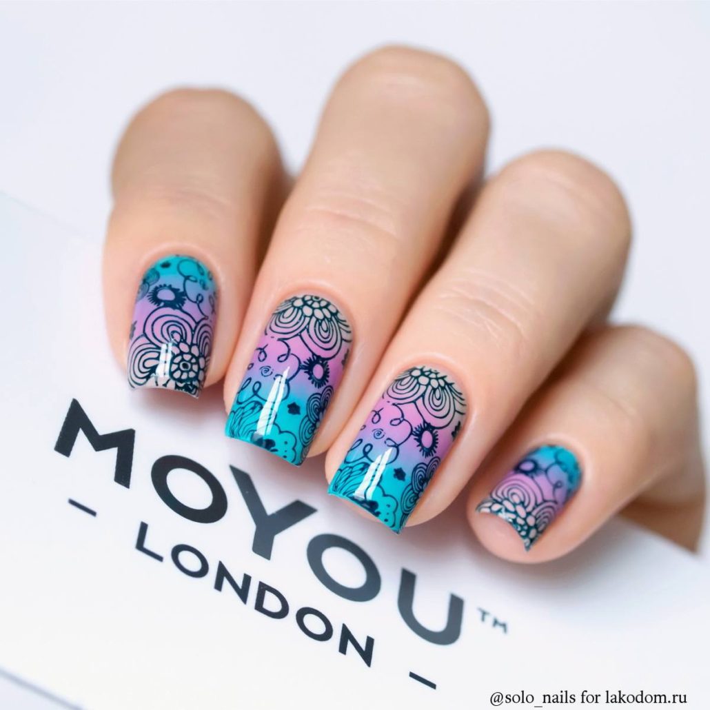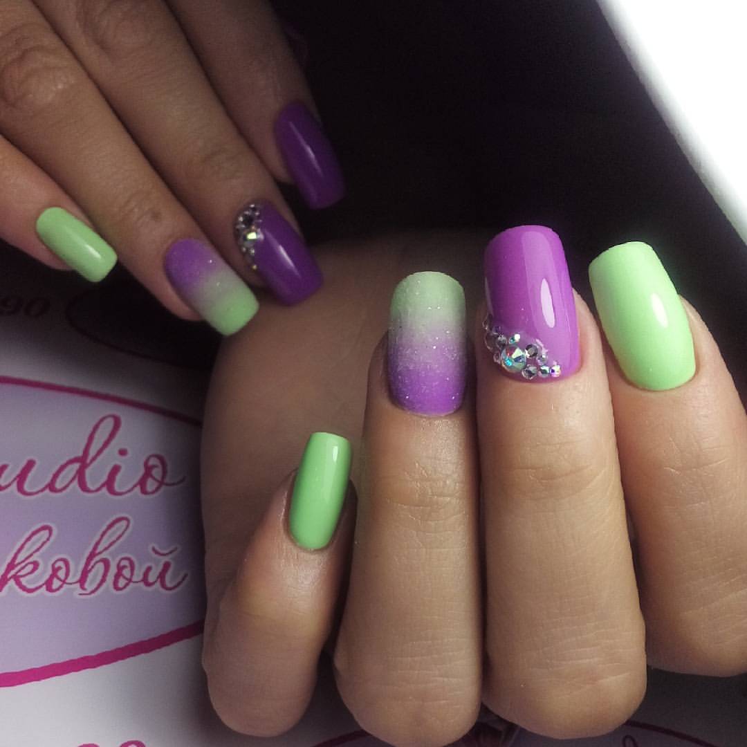 Ombre manucure est toujours d'actualité, l'idée principale étant une transition en douceur d'une couleur à l'autre. Dans ce cas, vous pouvez combiner n'importe quelle quantité, toutes les nuances.