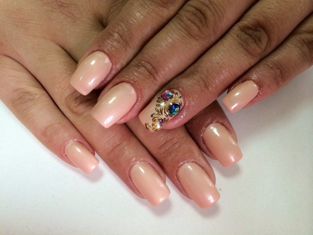 La popularité de la manucure nue continue de gagner du terrain. Et ce n’est pas surprenant, car le naturel est maintenant à la mode. Pour une telle manucure, toutes les nuances de gomme laque du lait à la pêche conviennent.
