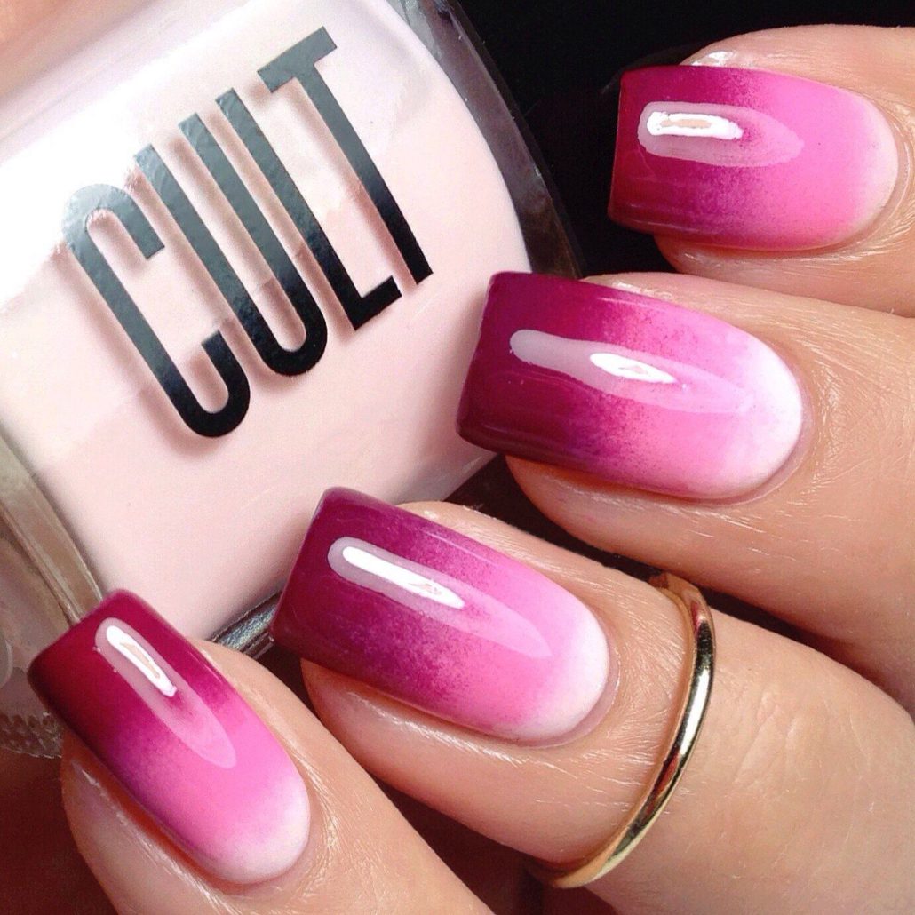 Le dégradé peut être horizontal ou vertical. Horizontal, il est plus esthétique sur les ongles longs, alors que vertical peut être utilisé sur les manucures courtes.
