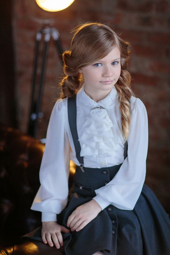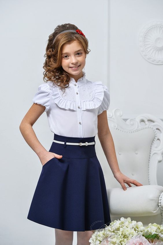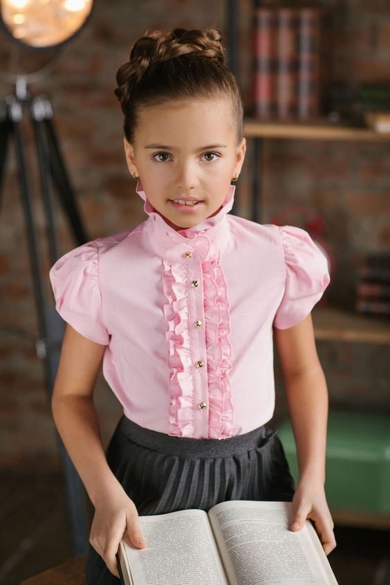 Il vaut également la peine de regarder les chemisiers modernes. Par exemple, les produits avec un décor supplémentaire ont fière allure, même sur une première niveleuse. Par conséquent, les chemisiers à volants, à volants et à cols inhabituels sont également indispensables tout au long de l'année scolaire.