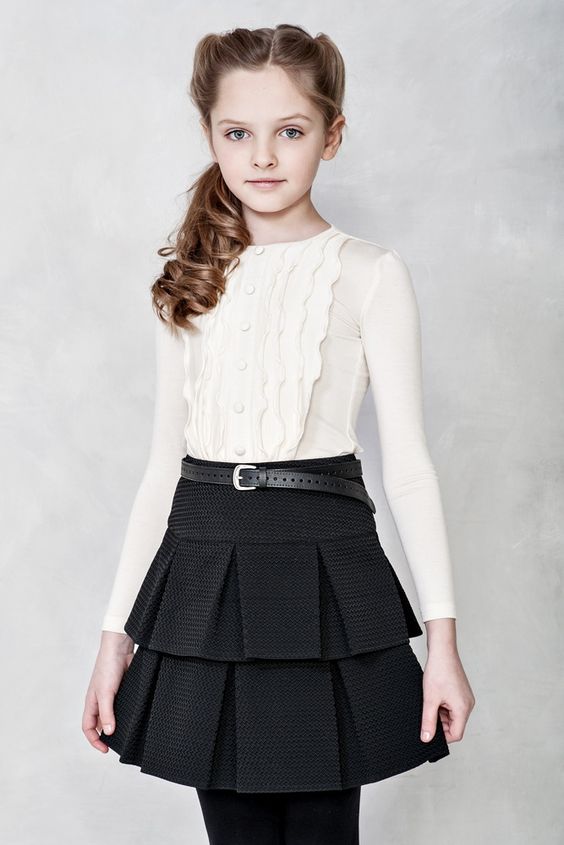 Parmi les styles les plus pertinents de jupes sont le trapèze, évasé et le soleil.Ce sont ces options qui constituent une base idéale pour les uniformes scolaires.