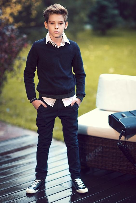 L'un des éléments les plus importants de la garde-robe d'un garçon est un costume. Les stylistes recommandent de regarder de plus près le pantalon coupe droite et de faire attention à la présence d'un gilet.
