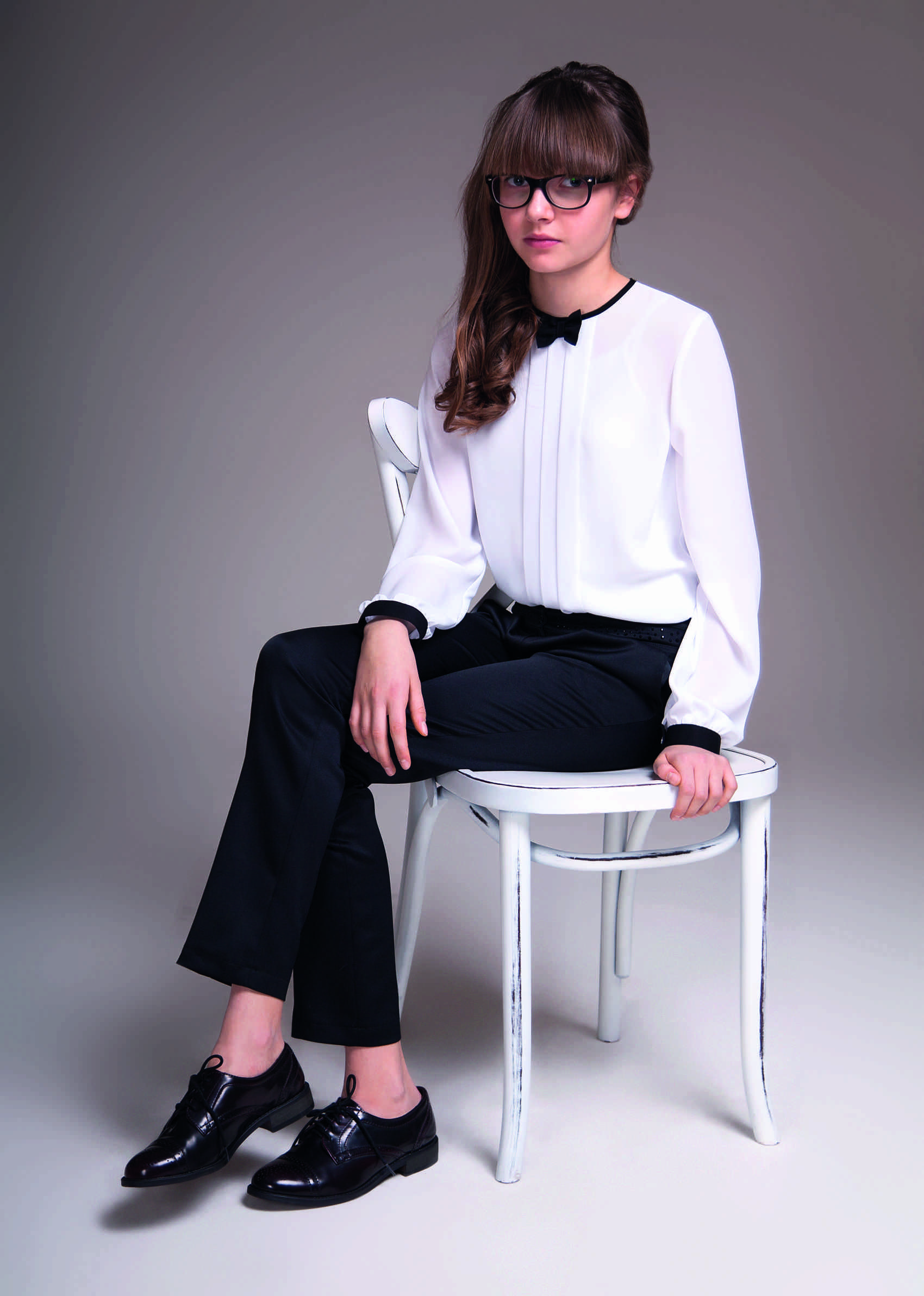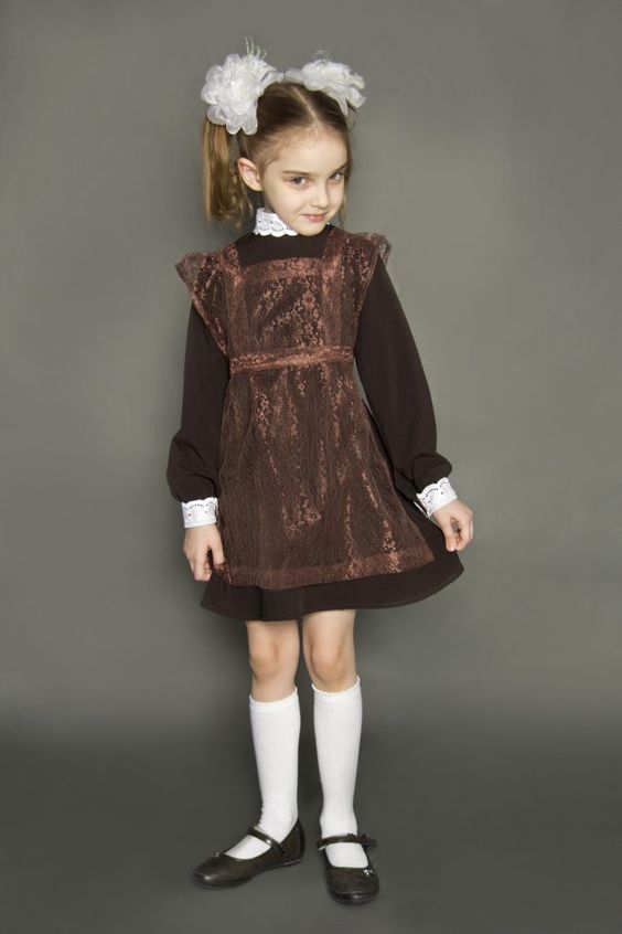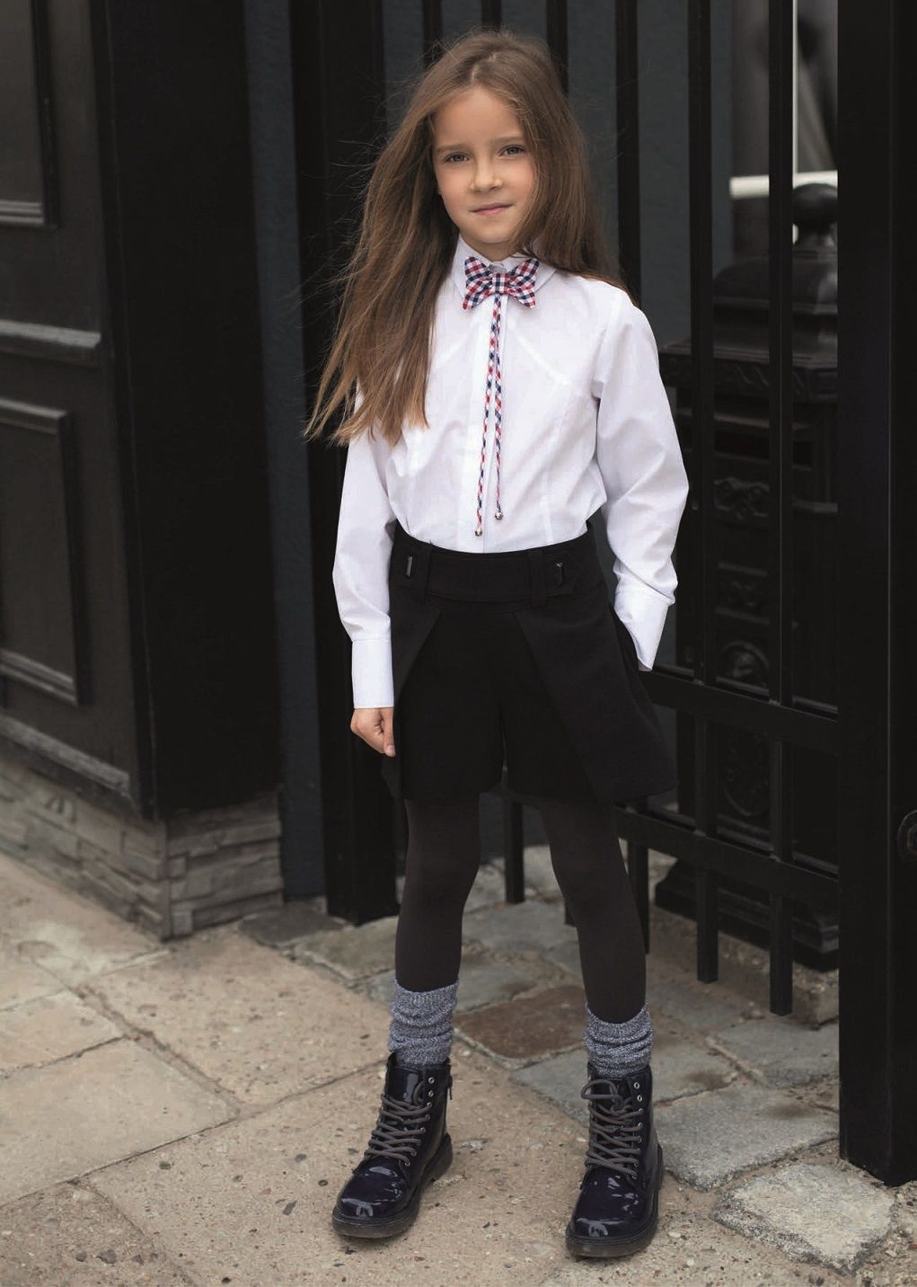 Dans la garde-robe de l’école secondaire, les tendances caractéristiques des adultes sont très courantes. Au plus fort de la popularité, les chemisiers à volants, à volants, à pantalons rigides et à jupes. Pour compléter l’image des filles, vous pouvez utiliser le décor supplémentaire sous forme de volants ou de colliers, qui sont fixés à l’aide de boutons ou de punaises. Ces détails supplémentaires aideront les filles à avoir l’air élégant et attrayant. La tendance principale du beau sexe est la jupe plissée, devenue également une mode pour adultes. Ils ont fière allure à la fois les élèves du primaire et les étudiants du secondaire.