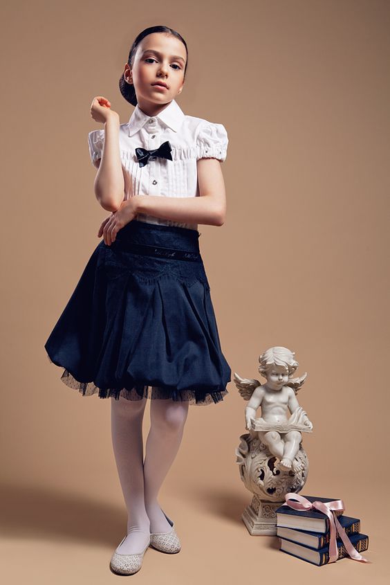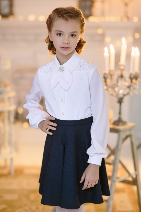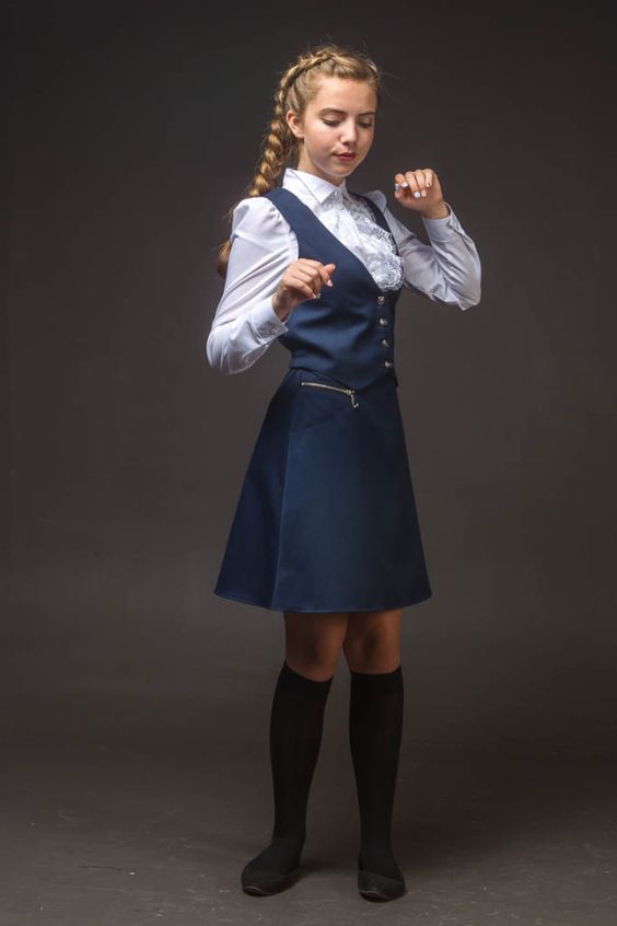 Le plus souvent, les filles de cet âge commencent à s'intéresser à la mode et au style. Mais toujours pour l'école, nous vous recommandons d'acheter un pantalon bleu classique et une veste assortie. Quant à la jupe, vous pouvez choisir presque n'importe quel style. Une excellente solution serait une jupe plissée, qui est à son apogée en 2026. Une jupe trapézoïdale et évasée reste également pertinente. Et bien sûr, on ne peut que mentionner la jupe crayon, qui a l'air un peu plus féminine. L'essentiel est de choisir la longueur du midi ou des genoux.
