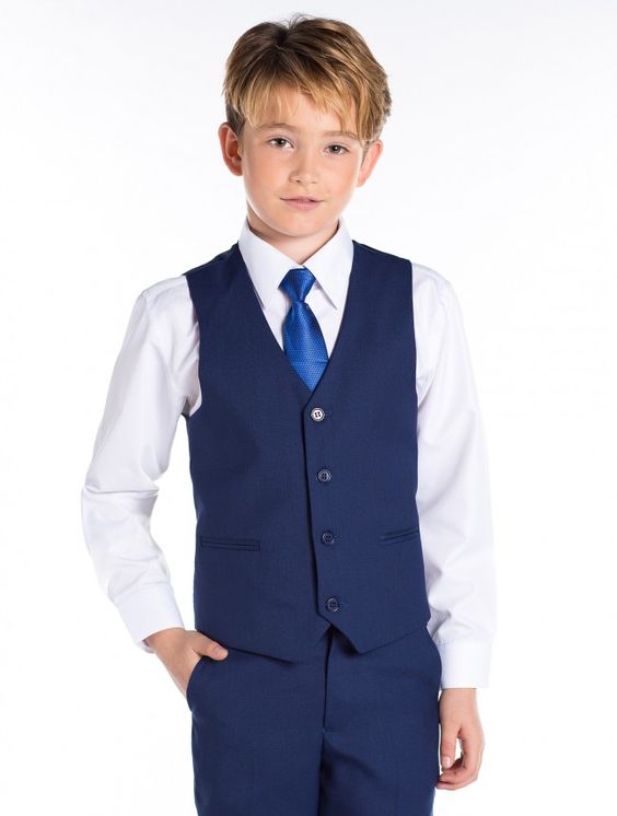 Pour commencer, il vaut la peine de chercher un pantalon et une veste bleue. Il est préférable d’acheter immédiatement un costume trois pièces, car il sera composé d’un seul matériau et d’une seule couleur. Une telle solution a toujours l’air beaucoup plus élégante et moderne. Si vous le souhaitez, vous pouvez acheter un cavalier dans le ton d'un uniforme scolaire. Grâce à ce détail, l'enfant pourra créer un plus grand nombre d'ensembles. Et bien sûr, n'oubliez pas les chemises à manches longues et courtes. Vous ne pouvez tout simplement pas vous en passer.