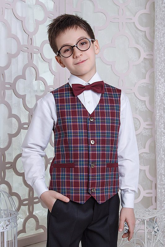 Une chemise est un élément de l'image pour un garçon, ce qui n'est pas inhérent. Cette saison, privilégiez une chemise à manches longues en coton ou en lin. Ce matériau est très léger et confortable et, en combinaison avec des vêtements à carreaux, ce t-shirt aura l’air élégant et élégant pour votre garçon. Vous pouvez choisir une chemise non seulement simple, mais aussi rayée. Une chemise dans le trou de coulée est une priorité pour les hommes adultes. Si vous voulez acheter un haut à carreaux pour votre fils, regardez plutôt le gilet ou la veste à carreaux. La veste peut être choisie pour correspondre au pantalon et obtenir un costume de pantalon à la mode. Le pantalon, comme une chemise, est un élément très important des uniformes scolaires. Le plus souvent, on choisit des pantalons droits classiques afin que votre garçon ressemble à un gars adulte et indépendant. À propos, en 2025-2026, les pantalons raccourcis et rétrécis sont à la mode. Les couleurs des vêtements de l'école ne peuvent pas être vives, mais doivent être en sourdine, par exemple vert foncé, brique ou beige. Le dernier élément de l'image d'un garçon peut être une cravate dans une cage, ce qui ajoutera à son charisme et à sa confiance en soi.