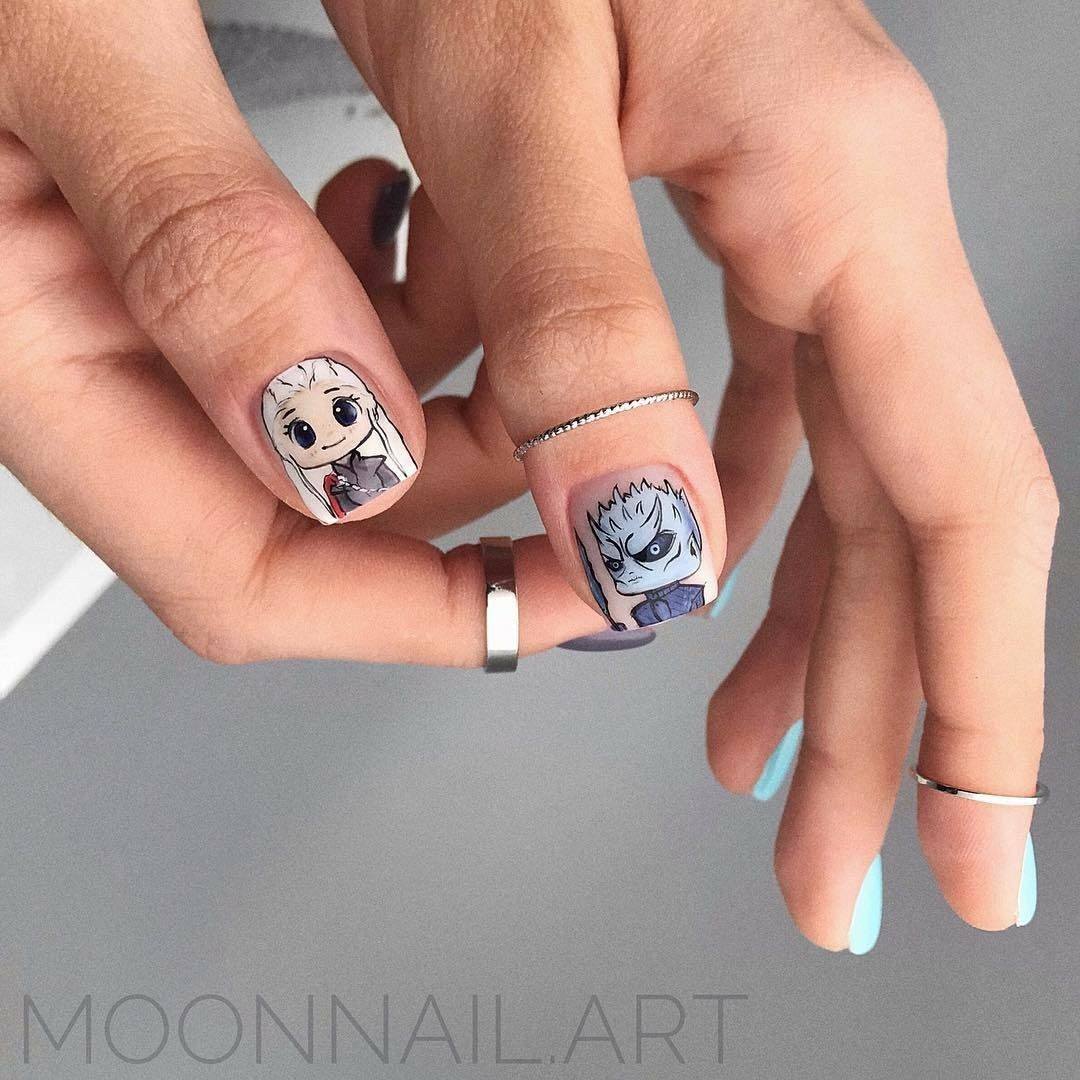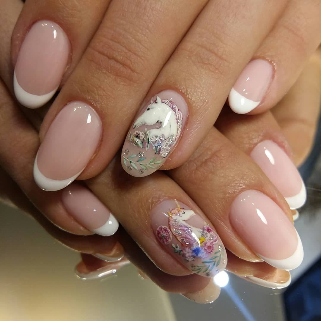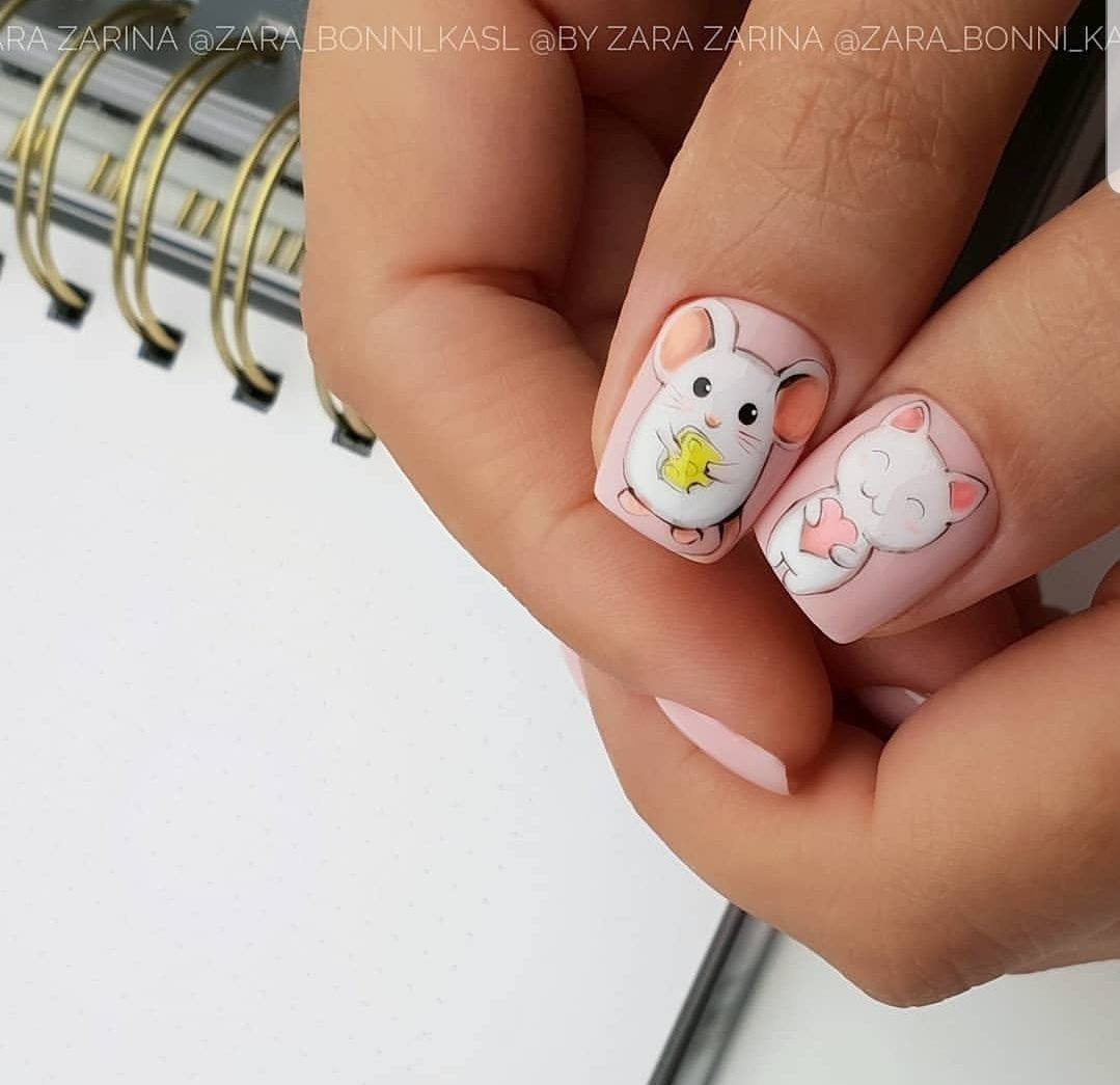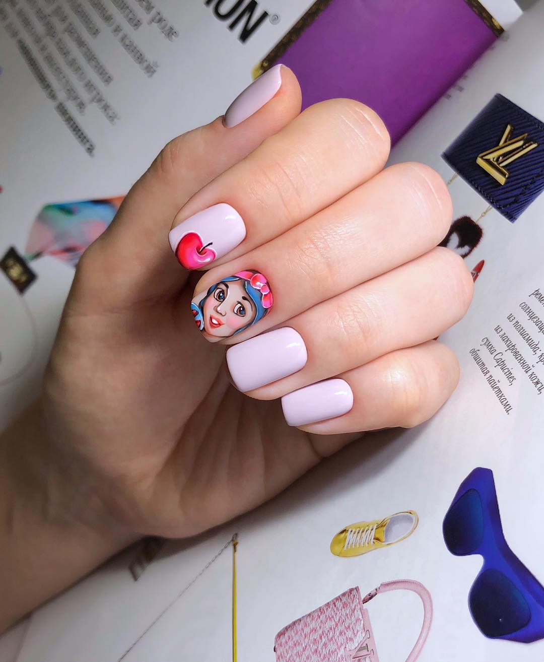 Toute écolière veut avoir l'air parfait. Surtout les filles qui ont atteint 12 ans.C'est la période où les filles commencent à flirter avec les garçons, alors elles essaient de donner à leur image un aspect élégant et en même temps soigné. Pour cet âge, une manucure française légère et décontractée est idéale. Une manucure avec un revêtement nu de la plaque à ongles aura également fière allure, et vous pouvez utiliser l’image de personnages de dessins animés comme décor. Beaucoup de fashionistas de cet âge préfèrent décorer leurs ongles avec un museau de panda noir et blanc.