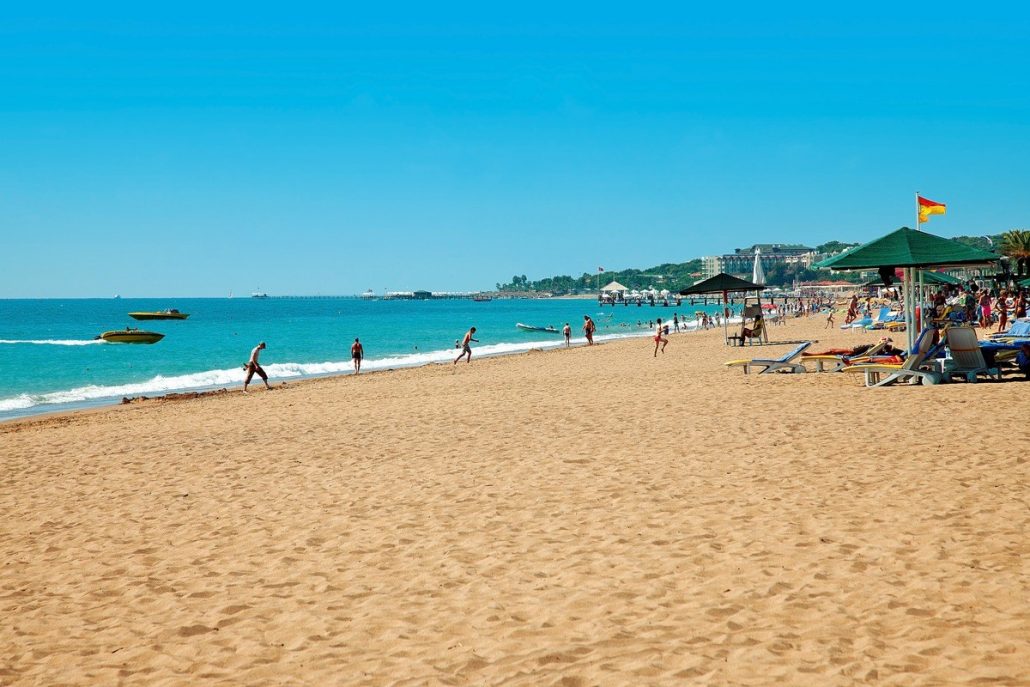 Il y a deux plages à Side - ouest et est. Ils sont situés à proximité et sont tous deux sablonneux, mais il existe des différences entre eux. La plage de l'ouest est plus populaire parce que la mer à cet endroit est peu profonde et donc considérée comme plus sûre. C'est un endroit idéal pour se détendre avec les enfants. Presque tout le territoire de la plage est divisé entre hôtels et bars. Les hôtels chers ont leurs propres plages et pour les étrangers l'entrée est fermée. L'entrée est gratuite dans les parties municipales, il ne sera nécessaire que de payer pour l'utilisation de l'infrastructure - 60-130 roubles.