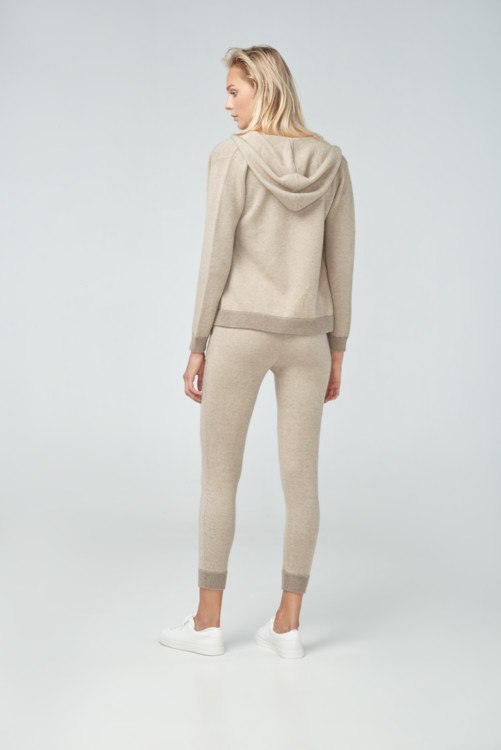 Pour les promenades par temps froid, les concepteurs ont présenté d’étonnants modèles de survêtements tricotés. De vastes couleurs et des motifs uniques vous captiveront au premier regard. Le motif «queue de cochon» est très joli, situé sur les côtés des manches et du pantalon. Ce modèle est merveilleusement combiné avec des parkas et des doudounes à la mode.