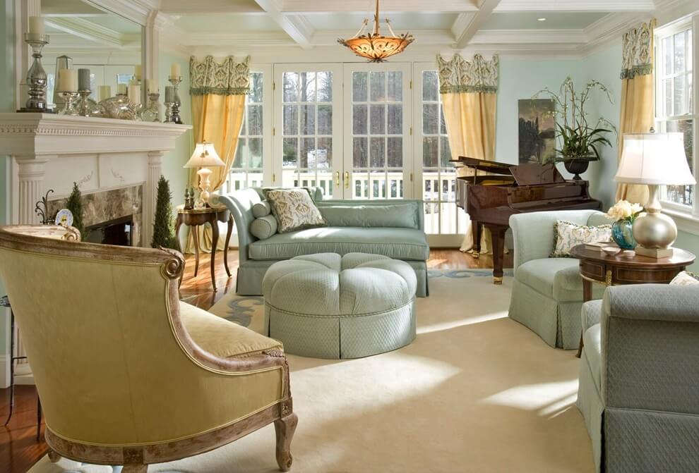 - Utilisez des nuances naturelles calmes. Ici, vous ne verrez pas de couleurs vives et acides. Tout sera brillant et pas accrocheur. Le plus souvent utilisé: blanc, crème, gris, jaune, olive, turquoise pâle, nuances de sable.