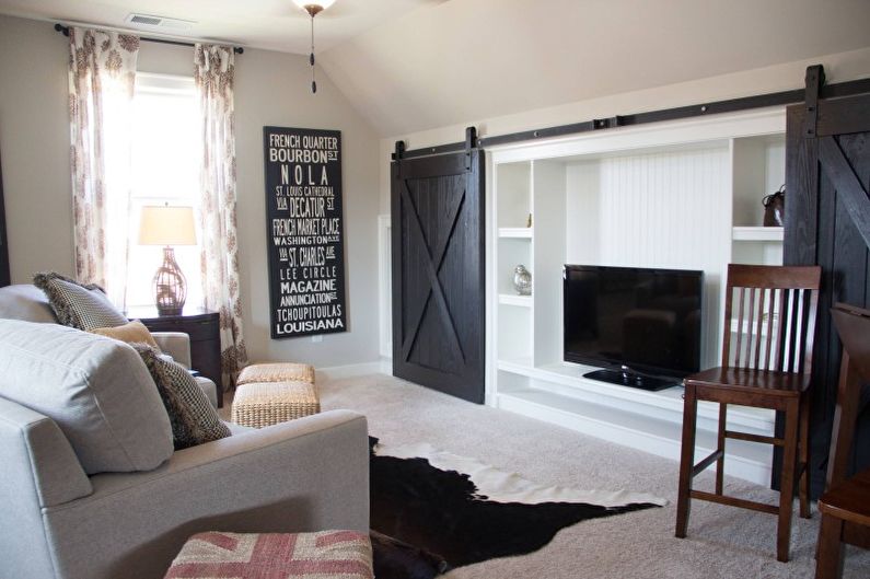 Pour la première fois, ce style de décoration a commencé à être utilisé dans les années 20-30 du siècle dernier. Et dans les années 50, ils ont commencé à l'utiliser pour la conception de maisons de campagne, mais aussi d'appartements en ville. Pays combiné simplicité rustique et multifonctionnalité. Ses caractéristiques distinctives sont:
