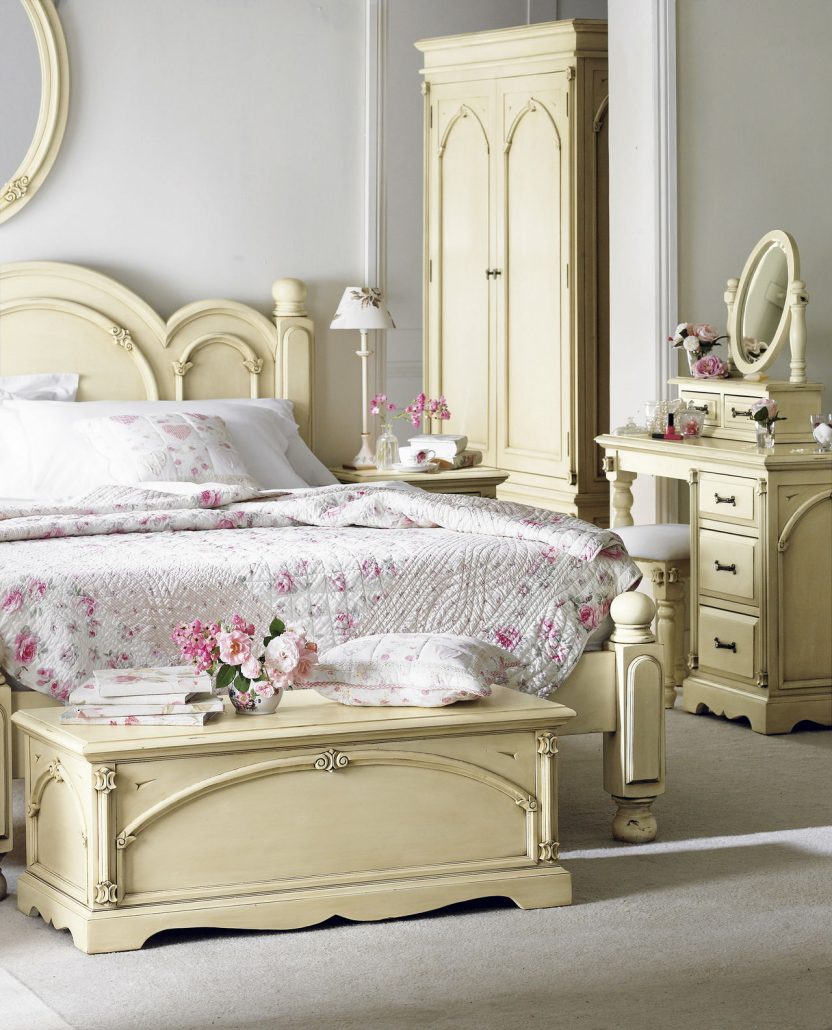 Le style provençal est caractérisé par de grands lits avec des têtes de lit en fer forgé, peintes avec de la peinture blanche. Les textiles peuvent être de couleurs pastel, ornés d'insertions de dentelle ou de motifs floraux délicats.