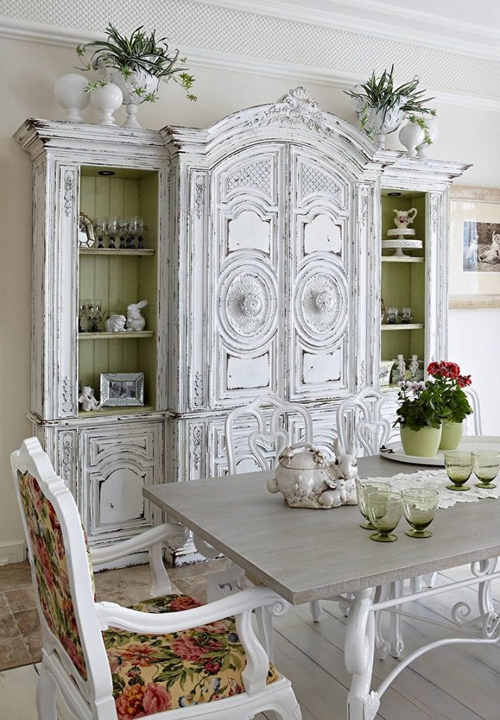 Les meubles de style provençal présentent des caractéristiques classiques avec une empreinte d'histoire. Le plus souvent, il est en bois, mais peut être forgé ou tissé. Dans le même temps, il est impératif qu'il soit peint avec une peinture pastel, à travers laquelle une texture ou des éraflures colorées peuvent apparaître.