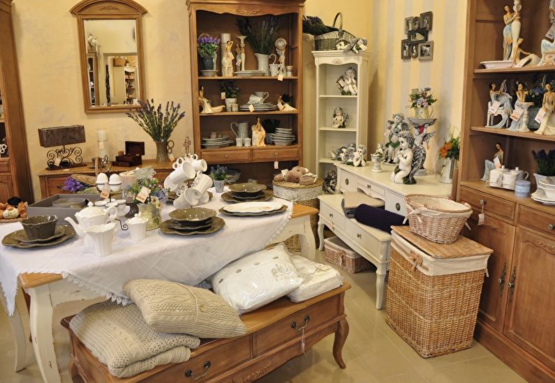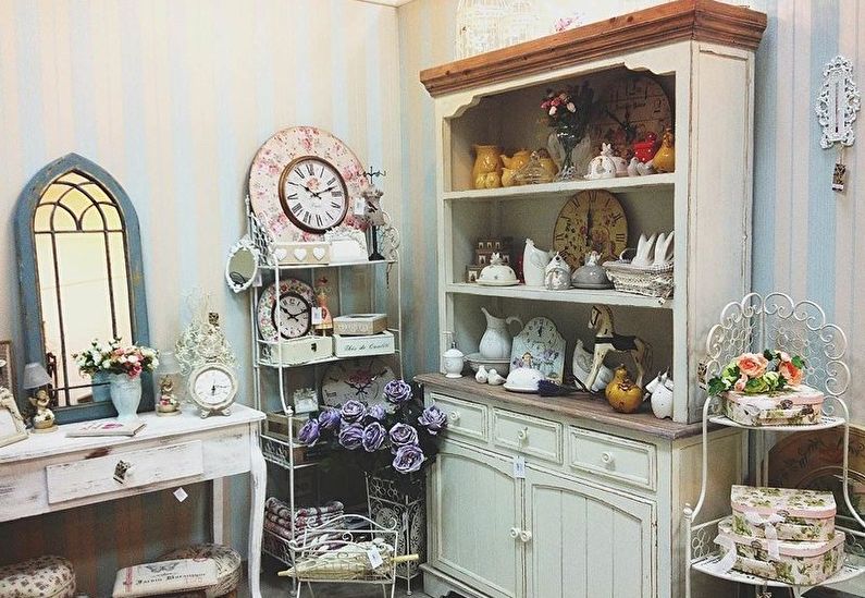 Les meubles ont souvent des traits classiques et sont souvent blancs comme neige. Basé sur les chanoines de la Provence, la salle devrait avoir beaucoup d'antiquités. Mais comme il est souvent coûteux, il est autorisé d’utiliser des meubles achetés sur un marché aux puces ou fabriqués sur commande avec l’effet du vieillissement artificiel.
