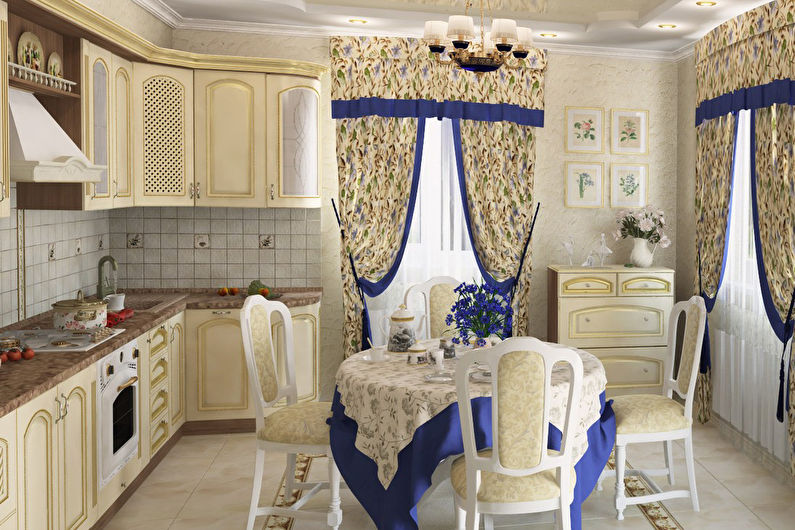 Les fenêtres devraient avoir des rideaux lumineux qui ne gêneraient pas le passage de l'air frais et du soleil. De plus, ils doivent être fabriqués avec des matériaux naturels - lin, coton. Ce qu’ils seront - qu’ils soient simples, à damiers ou avec une petite fleur dépend de l’intérieur général.