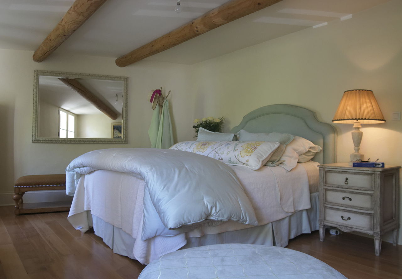 Le style provençal est caractérisé par de grands lits avec des têtes de lit en fer forgé, peintes avec de la peinture blanche. Les textiles peuvent être de couleurs pastel, ornés d'insertions de dentelle ou de motifs floraux délicats.