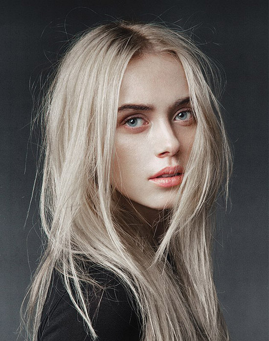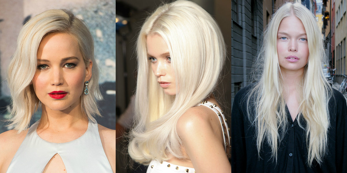 En parlant de couleur de cheveux blanche, nous entendons toutes les nuances de platine et d'argent. Ce n’est un secret pour personne que les couleurs de cheveux claires se fondent dans un teint de peau clair; par conséquent, ces nuances sont mieux adaptées aux peaux très bronzées ou foncées.
