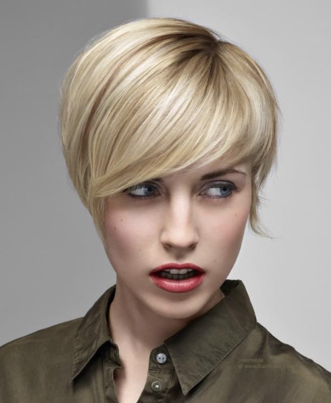 Assez inhabituel, mais en même temps, la coupe de cheveux courte originale convient particulièrement aux filles aux traits sophistiqués du visage. De ce fait, l’image s’avère douce, douce ou arrogante. Tout dépend du style choisi.